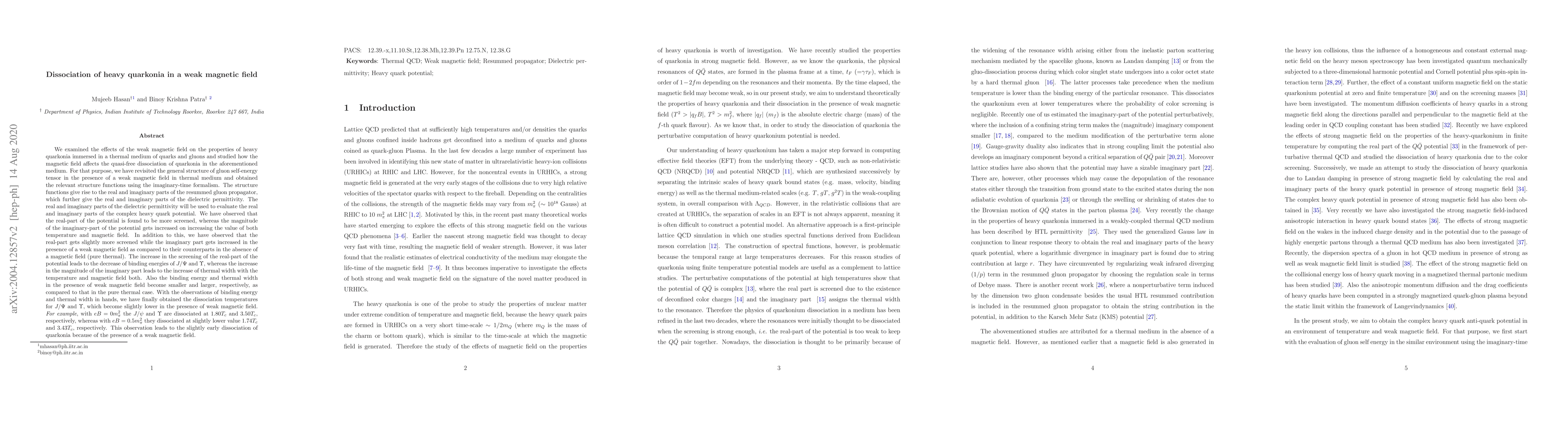This paper investigates the impact of weak magnetic fields on the dissociation of heavy quarkonia in a thermal medium, revealing that both the real and imaginary parts of the complex heavy quark potential are affected, leading to decreased binding energies and increased thermal widths. The presence of a weak magnetic field slightly lowers the dissociation temperatures of $J/\Psi$ and $\Upsilon$, indicating an early dissociation due to the magnetic field.