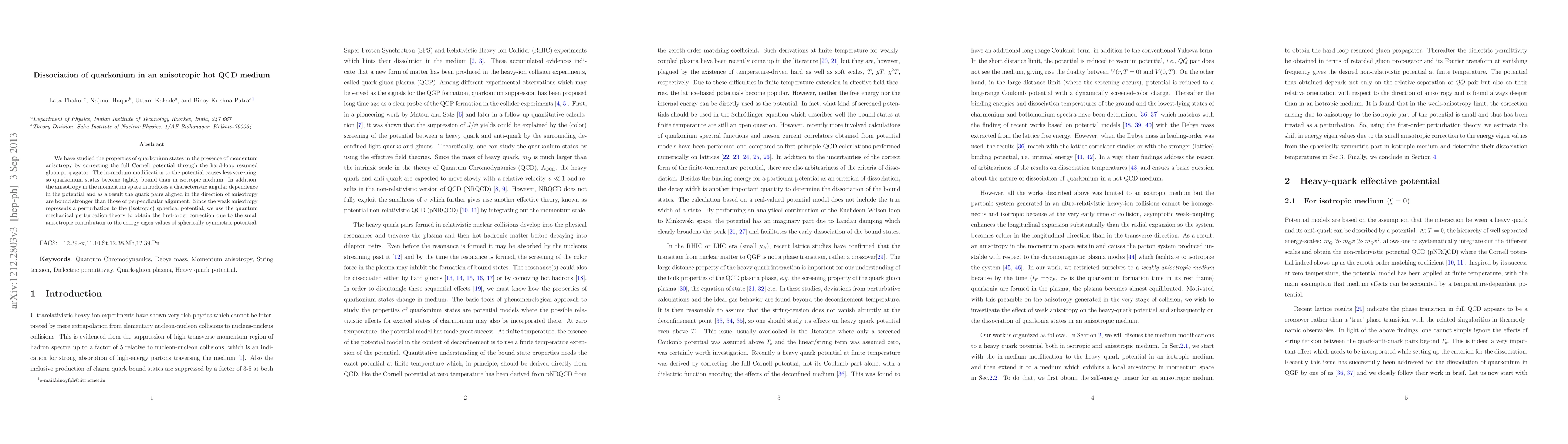This paper investigates quarkonium states in anisotropic hot QCD medium, finding less screening and tighter binding compared to isotropic medium due to a modified Cornell potential incorporating a dielectric function. The potential exhibits angular dependence, with quark pairs aligned along the anisotropy direction being more bound.