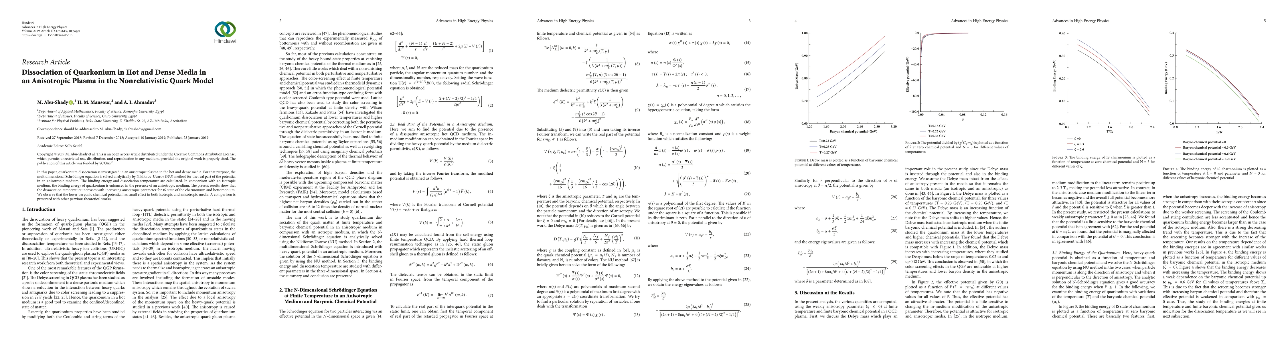 In this paper, quarkonium dissociation is investigated in an anisotropic plasma in the hot and dense media. For that purpose, the multidimensional Schrodinger equation is solved analytically by Nikiforov-Uvarov (NU) method for the real part of the potential in an anisotropic medium. The binding energy and dissociation temperature are calculated. In comparison with an isotropic medium, the binding energy of quarkonium is enhanced in the presence of an anisotropic medium. The present results show that the dissociation temperature increases with increasing anisotropic parameter for 1S state of the charmonium and bottomonium. We observe that the lower baryonic chemical potential has small effect in both isotropic and anisotropic media. A comparison is presented with other pervious theoretical works.