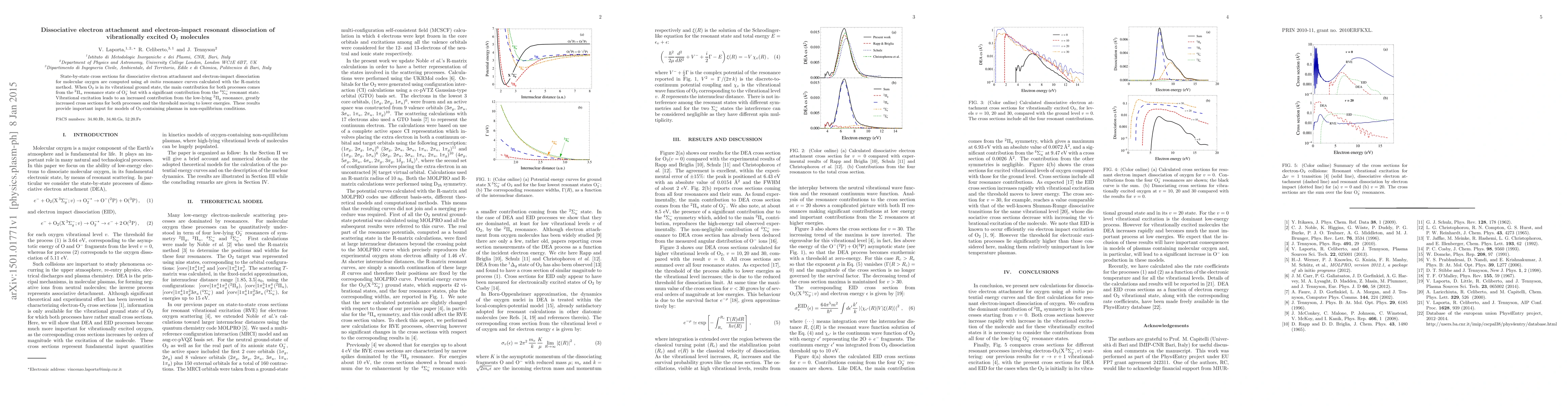 The paper presents new ab initio calculations for DEA and resonant electron-impact dissociation of vibrationally excited O2, confirming the dominant contribution of the 2Πu symmetry and highlighting the role of other low-lying resonance states.
