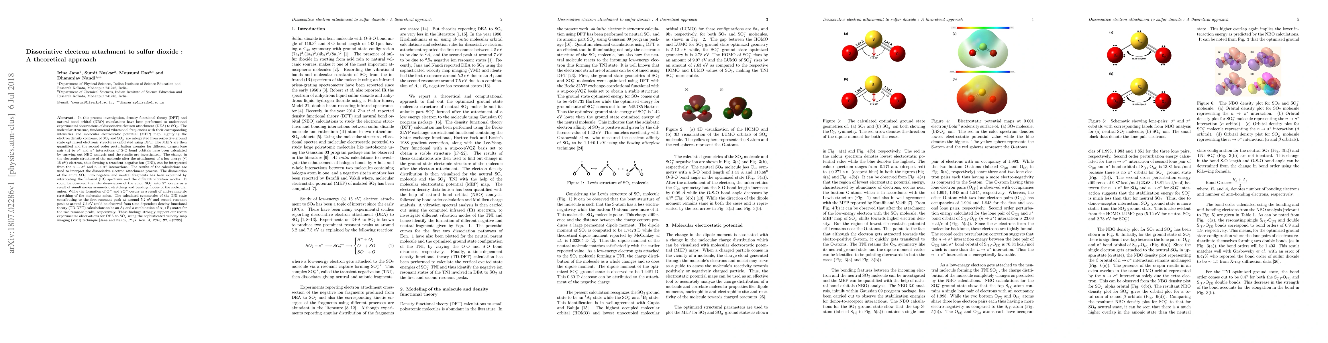 Researchers used density functional theory and natural bond orbital calculations to study dissociative electron attachment to sulfur dioxide, finding that the process involves interactions between oxygen lone pairs and sigma and pi bonds, and supporting recent experimental observations.