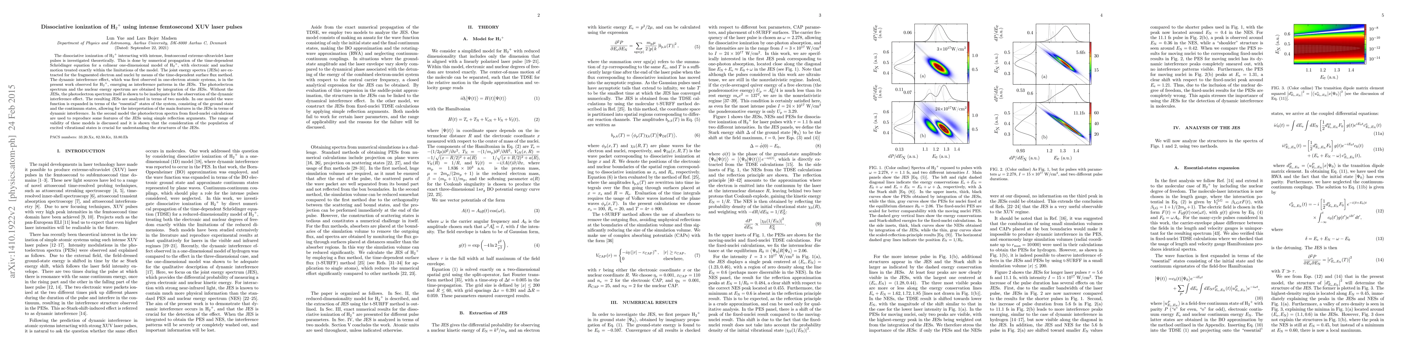 Researchers investigated the dissociative ionization of H2+ using intense femtosecond XUV laser pulses, observing dynamic interference effects in the joint-energy spectra, which were analyzed using two models.