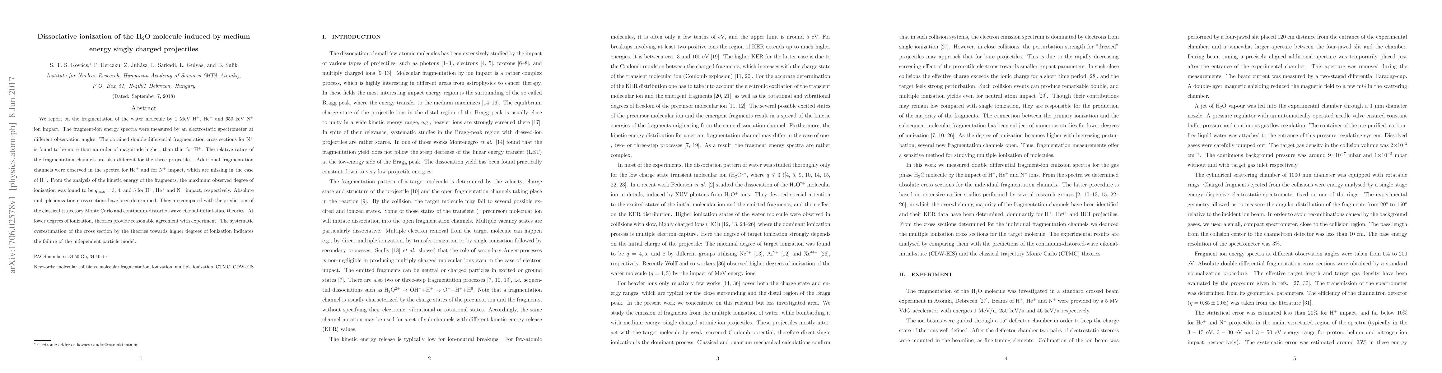 Researchers found that medium-energy ion impacts can dissociate water molecules into fragments with varying degrees of ionization, with N+ projectiles causing the most fragmentation and He+ and H+ projectiles producing different sets of fragment channels.