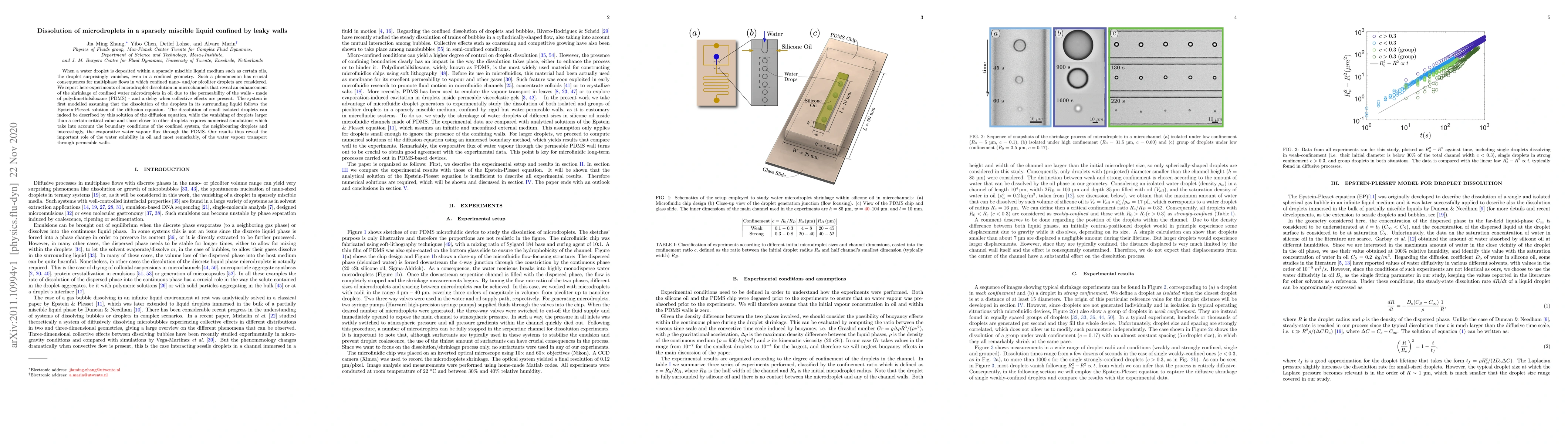 This paper investigates the dissolution of water microdroplets in a sparsely miscible oil medium confined within PDMS microchannels, revealing that permeability enhances droplet shrinkage. The study combines Epstein-Plesset diffusion equation modeling for small droplets and numerical simulations for larger ones, highlighting the significance of water solubility in oil and water vapour transport through permeable walls.