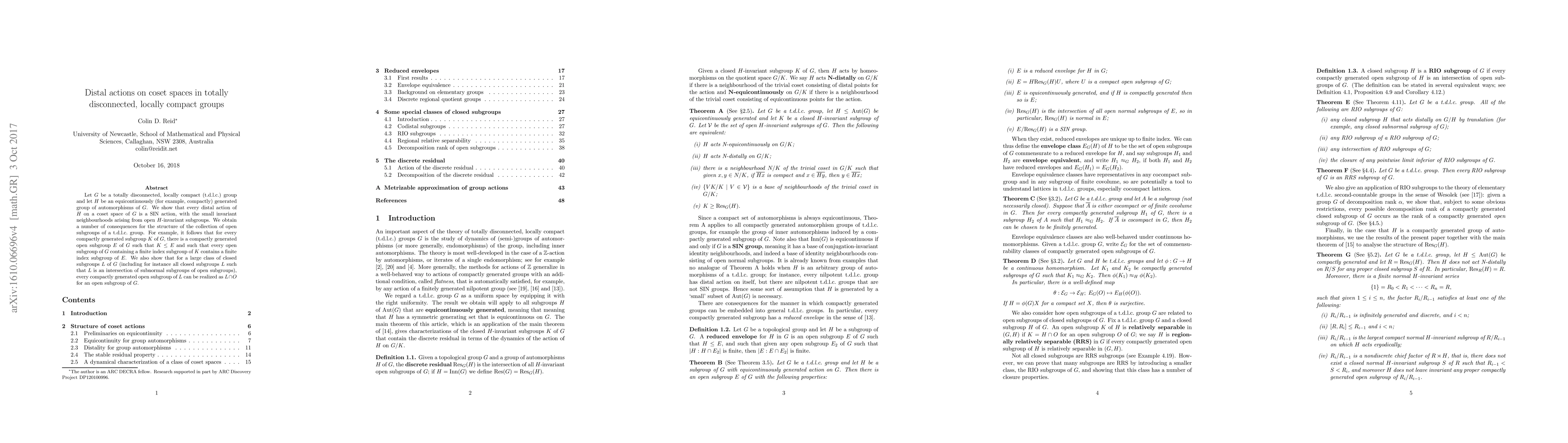 This paper shows that every distal action of a subgroup on a coset space of a totally disconnected group is a small invariant neighbourhood (SIN) action with specific properties, leading to new insights into the structure of open subgroups.