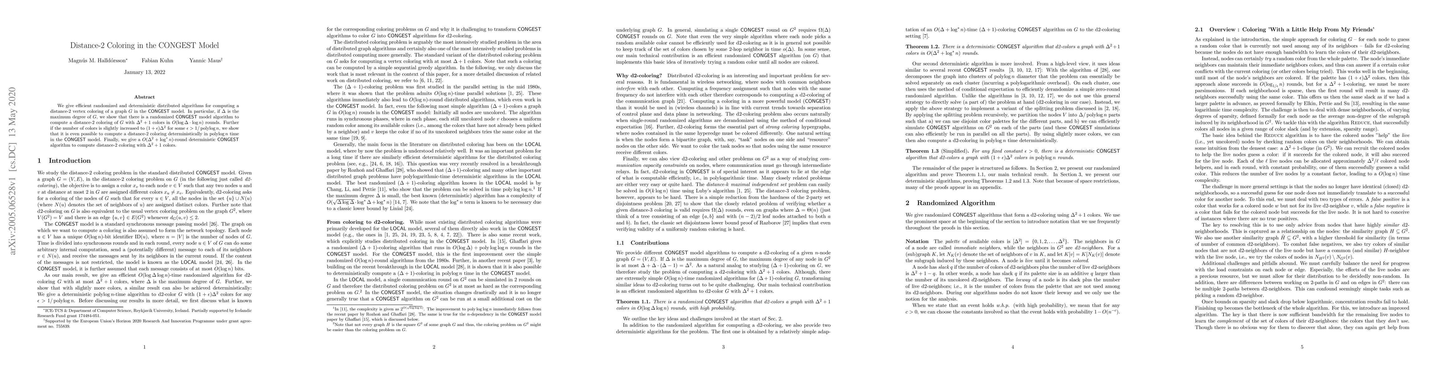 The paper presents novel distributed algorithms for distance-2 coloring in the CONGEST model, combining randomized and deterministic techniques to achieve efficient coloring with minimal color usage.