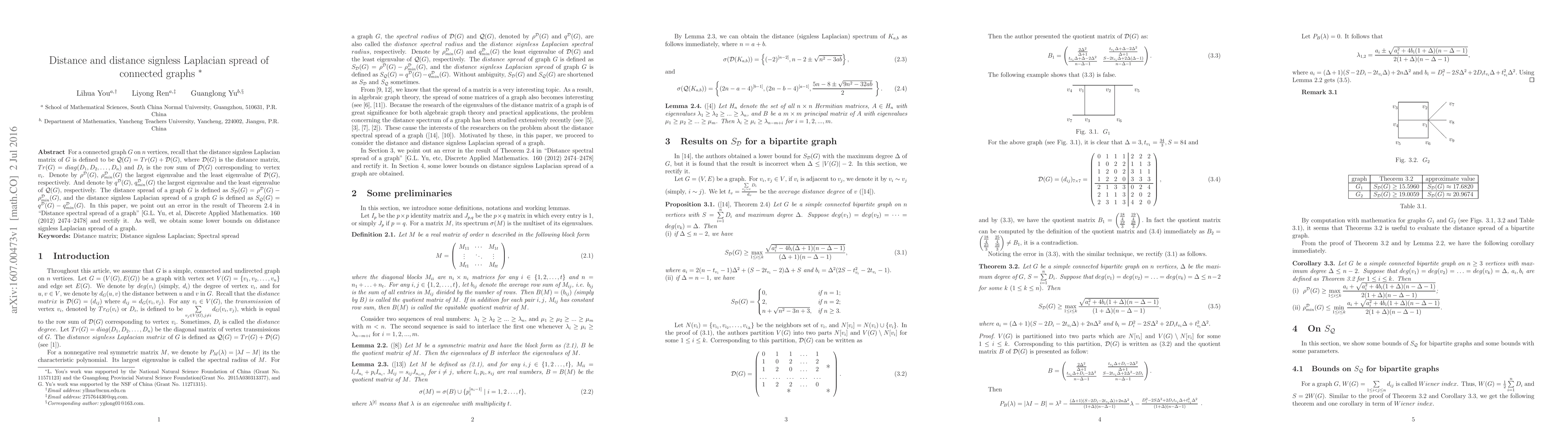 For a connected graph $G$ on $n$ vertices, recall that the distance signless Laplacian matrix of $G$ is defined to be $\mathcal{Q}(G)=Tr(G)+\mathcal{D}(G)$, where $\mathcal{D}(G)$ is the distance matrix, $Tr(G)=diag(D_1, D_2, \ldots, D_n)$ and $D_{i}$ is the row sum of $\mathcal{D}(G)$ corresponding to vertex $v_{i}$. Denote by $\rho^{\mathcal{D}}(G),$ $\rho_{min}^{\mathcal{D}}(G)$ the largest eigenvalue and the least eigenvalue of $\mathcal{D}(G)$, respectively. And denote by $q^{\mathcal{D}}(G)$, $q_{min}^{\mathcal{D}}(G)$ the largest eigenvalue and the least eigenvalue of $\mathcal{Q}(G)$, respectively. The distance spread of a graph $G$ is defined as $S_{\mathcal{D}}(G)=\rho^{\mathcal{D}}(G)- \rho_{min}^{\mathcal{D}}(G)$, and the distance signless Laplacian spread of a graph $G$ is defined as $S_{\mathcal{Q}}(G)=q^{\mathcal{D}}(G)-q_{min}^{\mathcal{D}}(G)$. In this paper, we point out an error in the result of Theorem 2.4 in "Distance spectral spread of a graph" [G.L. Yu, et al, Discrete Applied Mathematics. 160 (2012) 2474--2478] and rectify it. As well, we obtain some lower bounds on ddistance signless Laplacian spread of a graph.