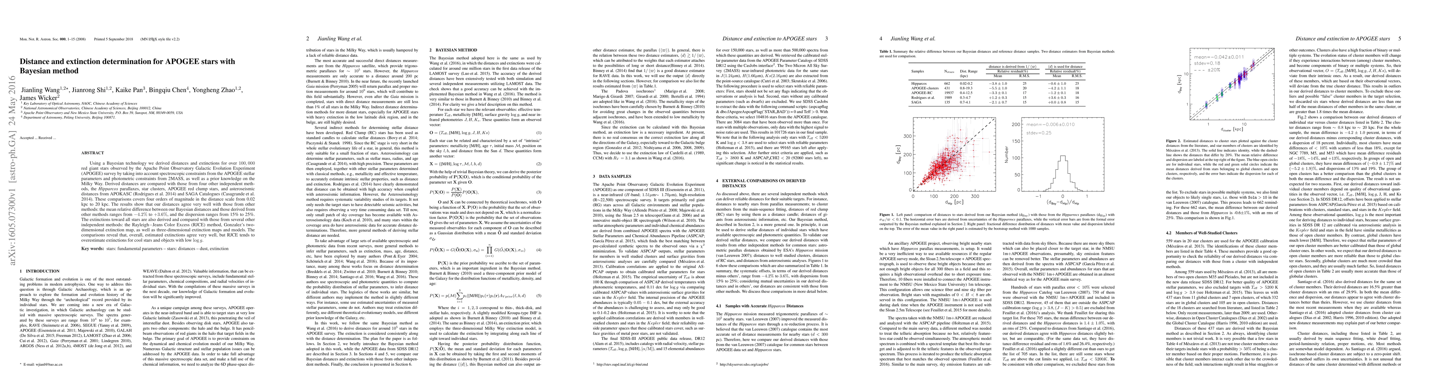 This paper uses a Bayesian method to derive distances and extinctions for over 100,000 red giant stars from the APOGEE survey, comparing results with other independent methods. The Bayesian distances show good agreement with other methods, with mean relative differences ranging from -4.2% to +3.6%. Extinctions derived also compare well but show RJCE overestimation for cool stars.