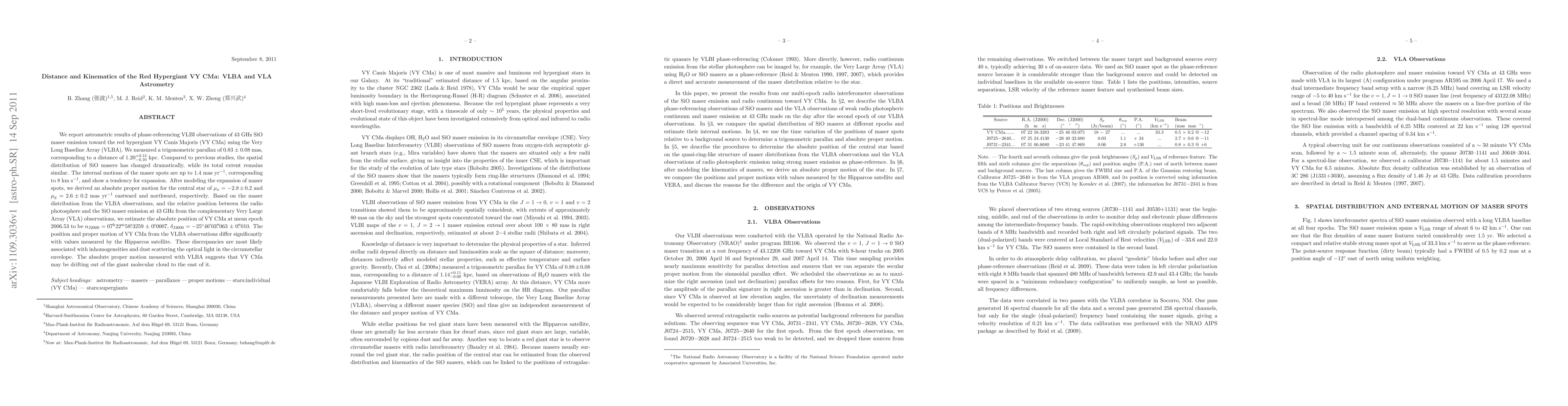 This paper reports astrometric results from VLBI observations of VY CMa, determining a distance of 1.20 kpc via trigonometric parallax. The study reveals significant changes in the spatial distribution of SiO masers, with internal motions up to 8 km/s, and derives an absolute proper motion for the star.