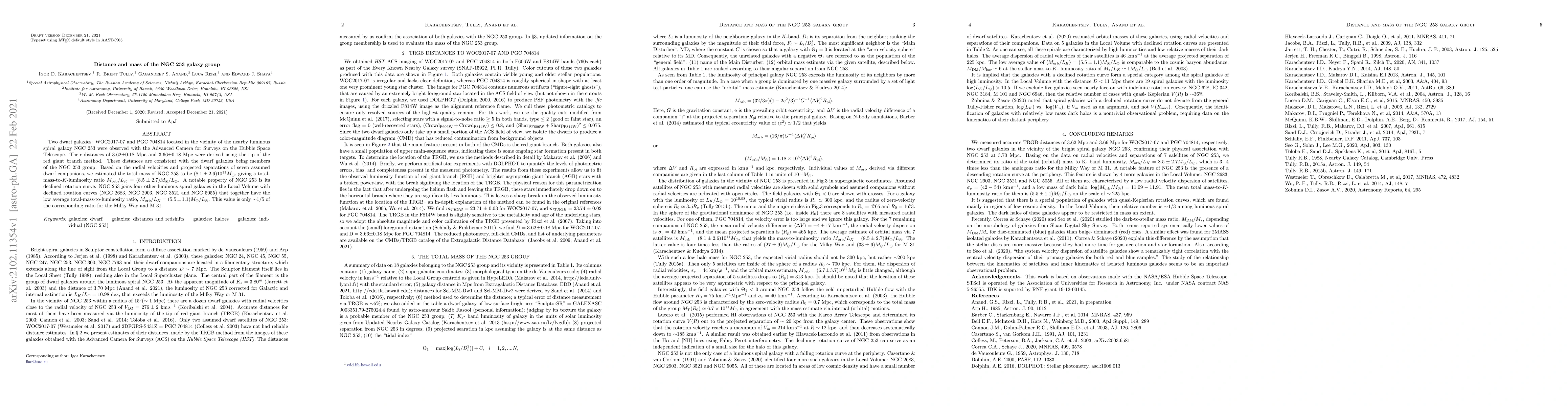 This study uses Hubble Space Telescope observations to determine the distances of two dwarf galaxies near NGC 253, confirming their membership in the NGC 253 group. The estimated total mass of NGC 253 is found to be $(8.1\pm2.6) 10^{11} M_{\odot}$, contributing to its declined rotation curve and low total-mass-to-luminosity ratio.