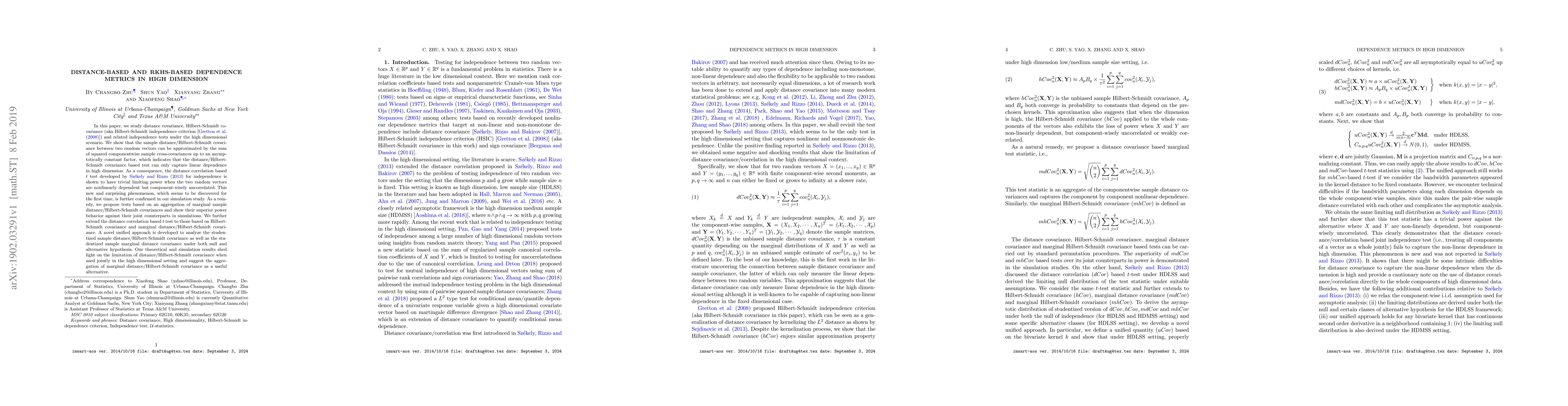 Researchers found that distance-based dependence metrics can only capture linear dependence in high dimensions, leading to limitations in detecting non-linear relationships. They propose a new approach using aggregated marginal covariance as an alternative.