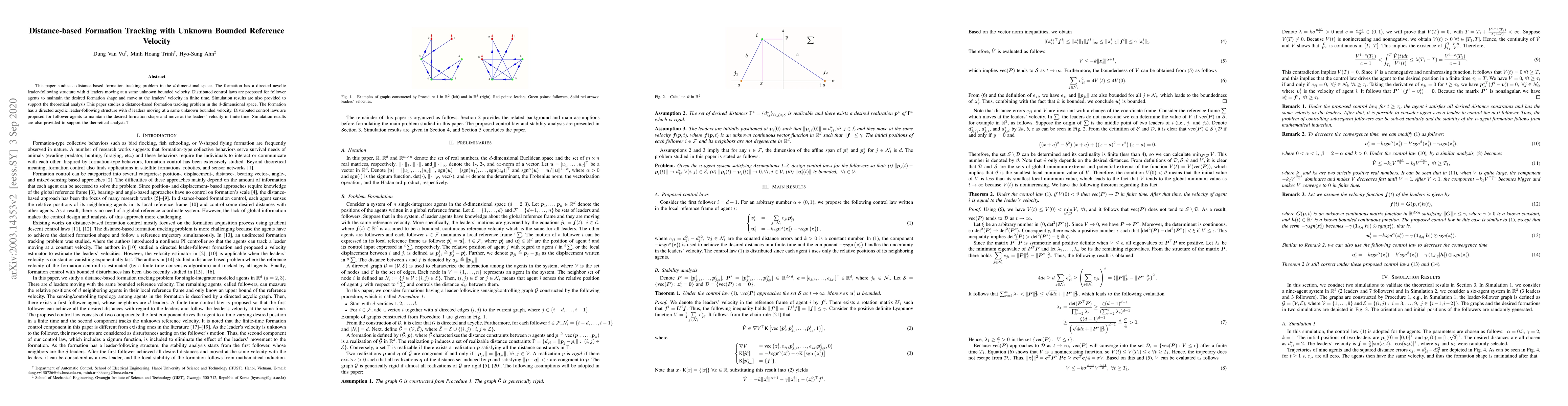 This paper studies a leader-follower formation tracking problem where the leaders are moving at the same unknown bounded velocity. A distance-based control law is proposed for follower agents to maintain the desired distances in the formation and move at the leaders' velocity. The control law consists of a component to handle the uncertainty of the leaders' velocity and a component to achieve the desired distances in finite time. Numerical simulations are also provided to support the theoretical results.