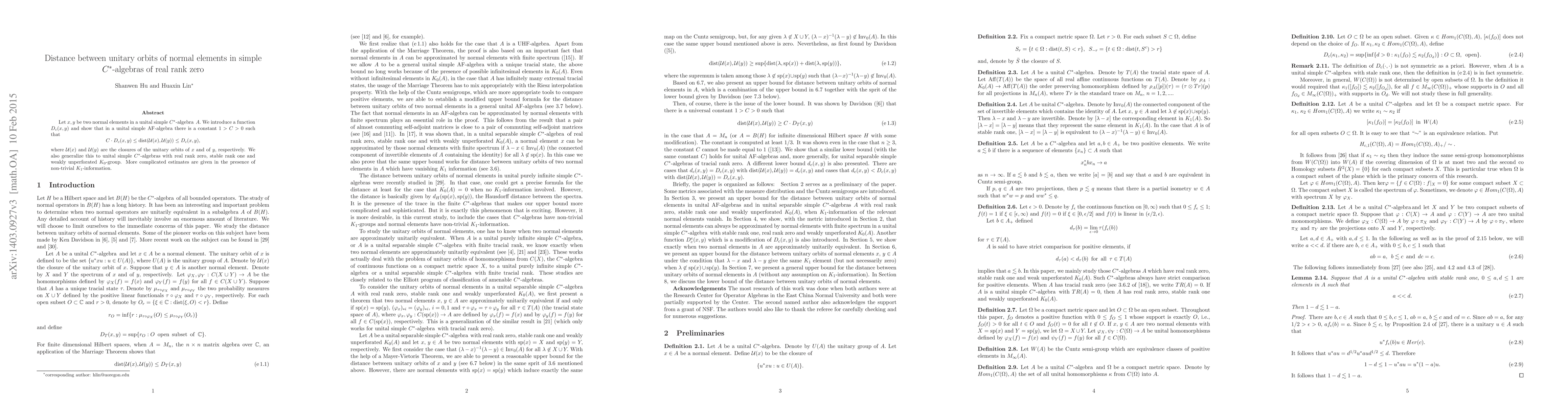 This paper introduces a function $D_c(x, y)$ to measure the distance between unitary orbits of normal elements in unital simple C*-algebras, proving a constant bound in unital simple AF-algebras and extending these results to algebras with real rank zero, stable rank one, and weakly unperforated $K_0$-group, with additional complexities considered when $K_1$-information is non-trivial.
