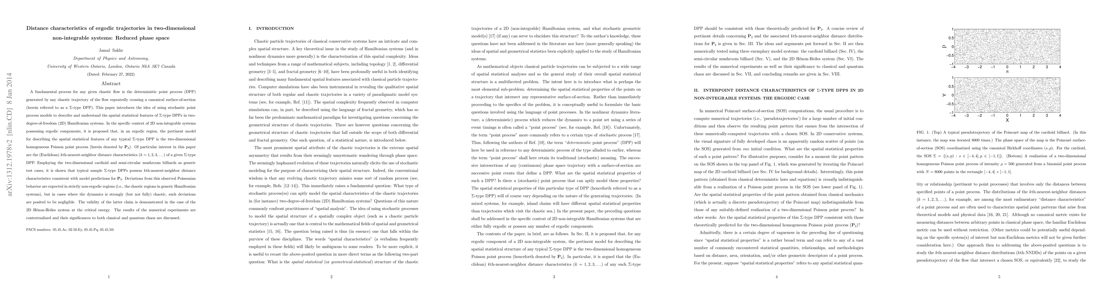 A fundamental process for any given chaotic flow is the deterministic point process (DPP) generated by any chaotic trajectory of the flow repeatedly crossing a canonical surface-of-section (herein referred to as a sigma-type DPP). This paper introduces the idea of using stochastic point process models to describe and understand the spatial statistical features of sigma-type DPPs in two-degree-of-freedom (2D) Hamiltonian systems. In the specific context of 2D non-integrable systems possessing ergodic components, it is proposed that, in an ergodic region, the pertinent model for describing the spatial statistical features of any typical sigma-type DPP is the two-dimensional homogeneous Poisson point process (herein denoted by P2). Of particular interest in this paper are the (Euclidean) kth-nearest-neighbor distance characteristics (k=1,2,3,...) of a given sigma-type DPP. Employing the two-dimensional cardioid and semi-circular mushroom billiards as generic test cases, it is shown that typical sample sigma-type DPPs possess kth-nearest-neighbor distance characteristics consistent with model predictions for P2. Deviations from this observed Poissonian behavior are expected in strictly non-ergodic regions (i.e., the chaotic regions in generic Hamiltonian systems), but in cases where the dynamics is strongly (but not fully) chaotic, such deviations are posited to be negligible. The validity of the latter claim is demonstrated in the case of the 2D Henon-Heiles system at the critical energy. The results of the numerical experiments are contextualized and their significances to both classical and quantum chaos are discussed.
