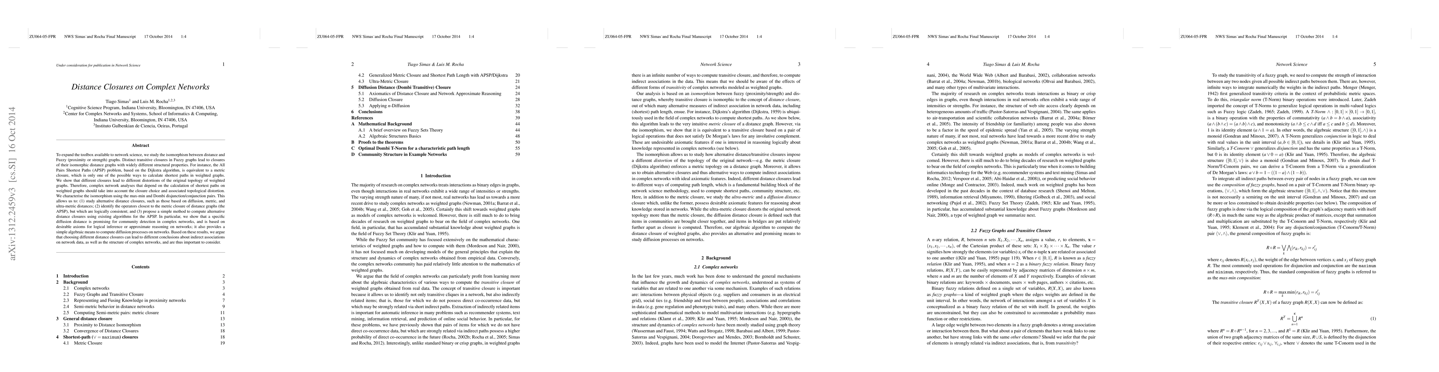 This paper explores the isomorphism between distance and Fuzzy graphs in complex networks, highlighting the implications of various transitive closures on structural properties. It proposes alternative distance closures, including diffusion-based methods, and argues that different closures can yield distinct insights into network topology and community detection.