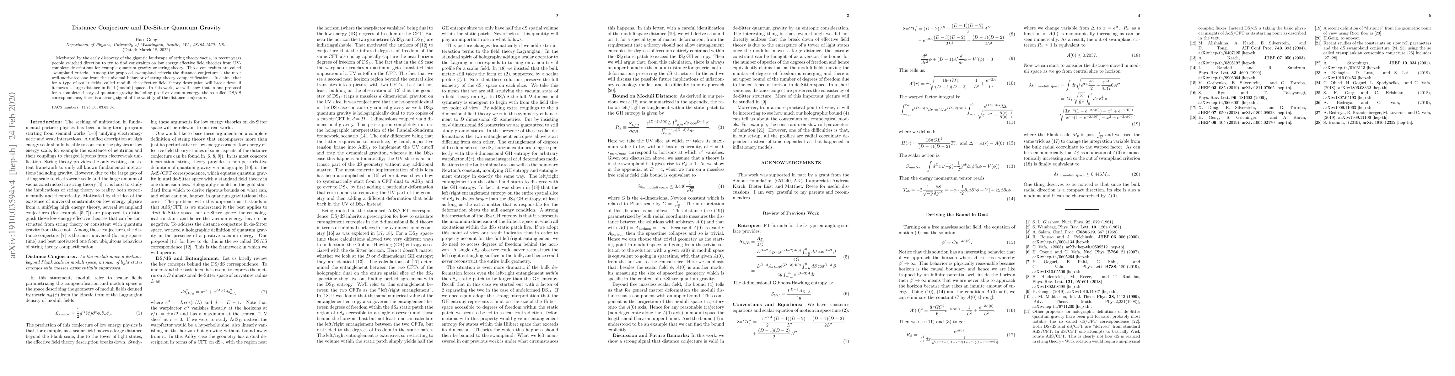 Motivated by the early discovery of the gigantic landscape of string theory vacua, in recent years people switched direction to try to find constraints on low energy effective field theories from UV-complete descriptions for example quantum gravity or string theory. Those constraints are called swampland criteria. Among the proposed swampland criteria the distance conjecture is the most well-motivated one from the universal behavior of string theory compactifications. It claims that for a type of scalar fields, called moduli, the effective field theory description will break down if it moves a large distance in field (moduli) space. In this work, we will show that in one proposal for a complete theory of quantum gravity including positive vacuum energy, the so called DS/dS correspondence, there is a strong signal of the validity of the distance conjecture.