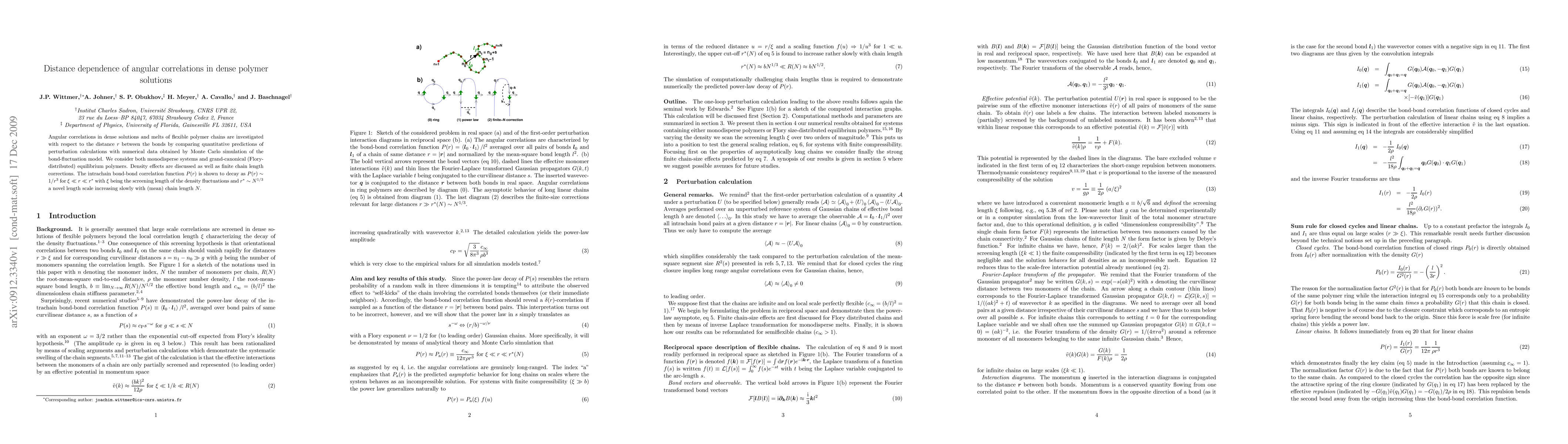 This paper investigates angular correlations in dense polymer solutions and melts, comparing perturbation calculations with Monte Carlo simulations. It finds that the intrachain bond-bond correlation function $P(r)$ decays as $P(r) \sim 1/r^3$ for intermediate distances, introducing a new length scale $r^* \sim N^{1/3}$ that grows slowly with chain length $N$.