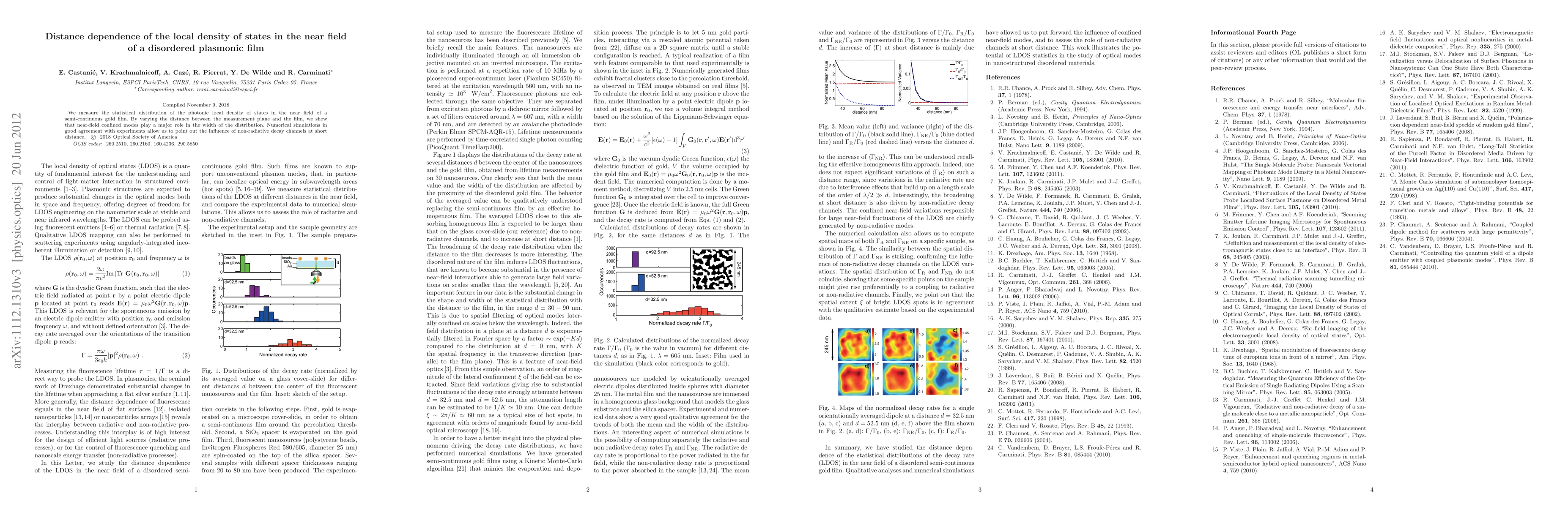 This study measures the photonic local density of states in the near field of a disordered plasmonic gold film, demonstrating that near-field confined modes significantly affect the distribution width. The research highlights the impact of non-radiative decay channels at short distances, supported by numerical simulations that align well with experimental results.