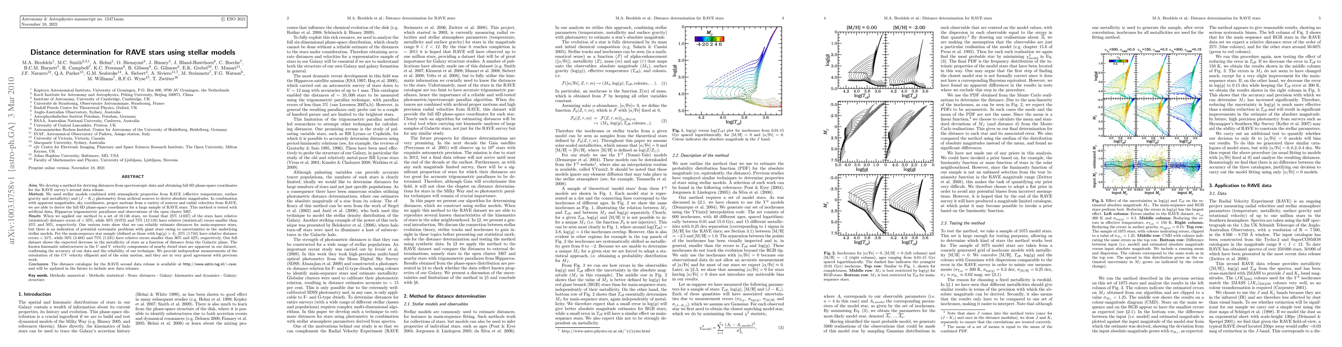 This paper develops a method for determining distances from spectroscopic data to derive 6D phase-space coordinates for RAVE stars. The method combines stellar models with atmospheric properties and photometry, showing reliable distance estimates for main-sequence stars but potential issues with giants.
