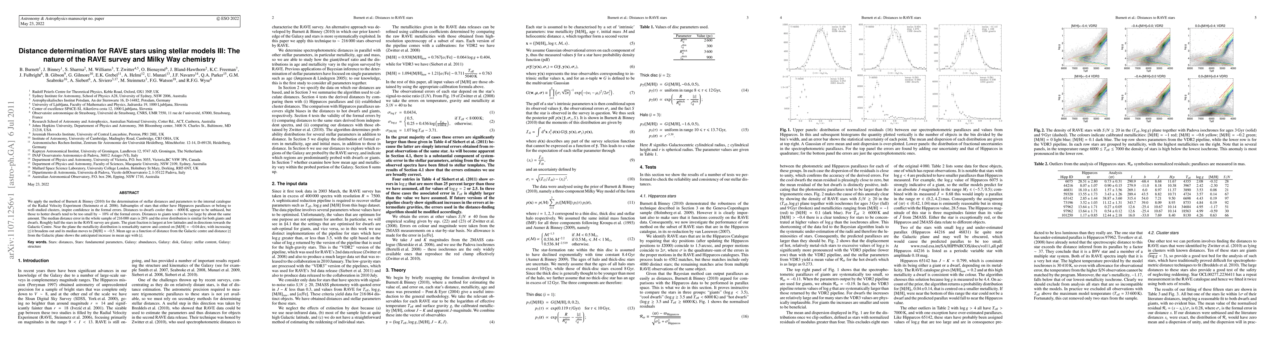 This paper uses the method of Burnett & Binney (2010) to determine distances for stars in the RAVE survey, finding that distances to cooler dwarfs are unbiased while those to hotter dwarfs are underestimated by ~10%. The median distance error across 216,000 stars is 28%. The survey reveals a predominantly giant star population, especially near the Galactic Centre, with a metallicity distribution that narrows near the Galactic plane and broadens with increasing vertical distance.