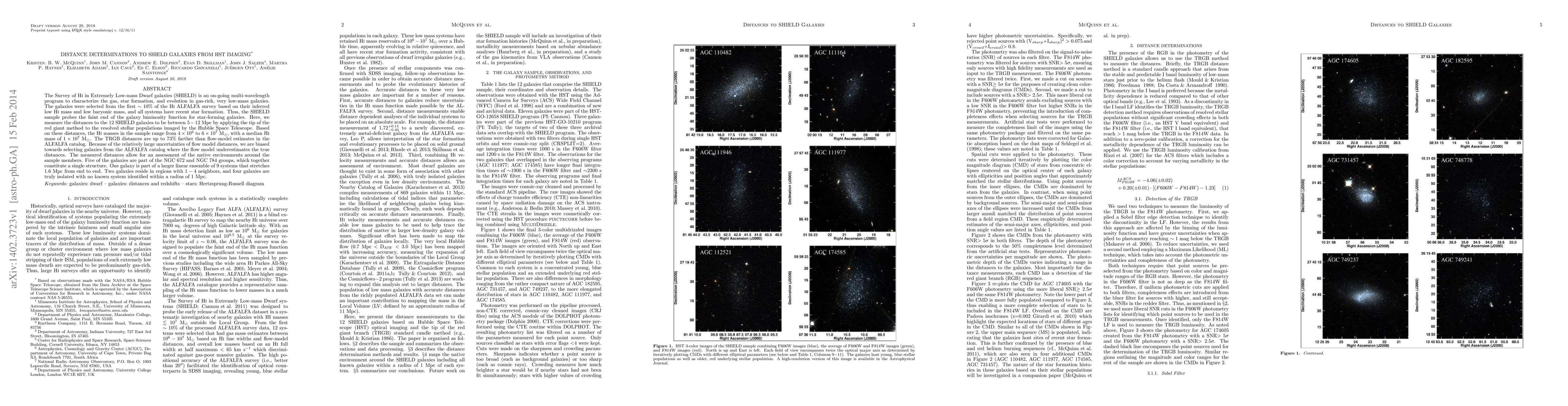 The Survey of HI in Extremely Low-mass Dwarf galaxies (SHIELD) is an on-going multi-wavelength program to characterize the gas, star formation, and evolution in gas-rich, very low-mass galaxies. The galaxies were selected from the first ~10% of the HI ALFALFA survey based on their inferred low HI mass and low baryonic mass, and all systems have recent star formation. Thus, the SHIELD sample probes the faint end of the galaxy luminosity function for star-forming galaxies. Here, we measure the distances to the 12 SHIELD galaxies to be between 5-12 Mpc by applying the tip of the red giant method to the resolved stellar populations imaged by the Hubble Space Telescope. Based on these distances, the HI masses in the sample range from $4\times10^6$ to $6\times10^7$ M$_{\odot}$, with a median HI mass of $1\times10^7$ M$_{\odot}$. The TRGB distances are up to 73% farther than flow-model estimates in the ALFALFA catalog. Because of the relatively large uncertainties of flow model distances, we are biased towards selecting galaxies from the ALFALFA catalog where the flow model underestimates the true distances. The measured distances allow for an assessment of the native environments around the sample members. Five of the galaxies are part of the NGC 672 and NGC 784 groups, which together constitute a single structure. One galaxy is part of a larger linear ensemble of 9 systems that stretches 1.6 Mpc from end to end. Two galaxies reside in regions with 1-4 neighbors, and four galaxies are truly isolated with no known system identified within a radius of 1 Mpc.