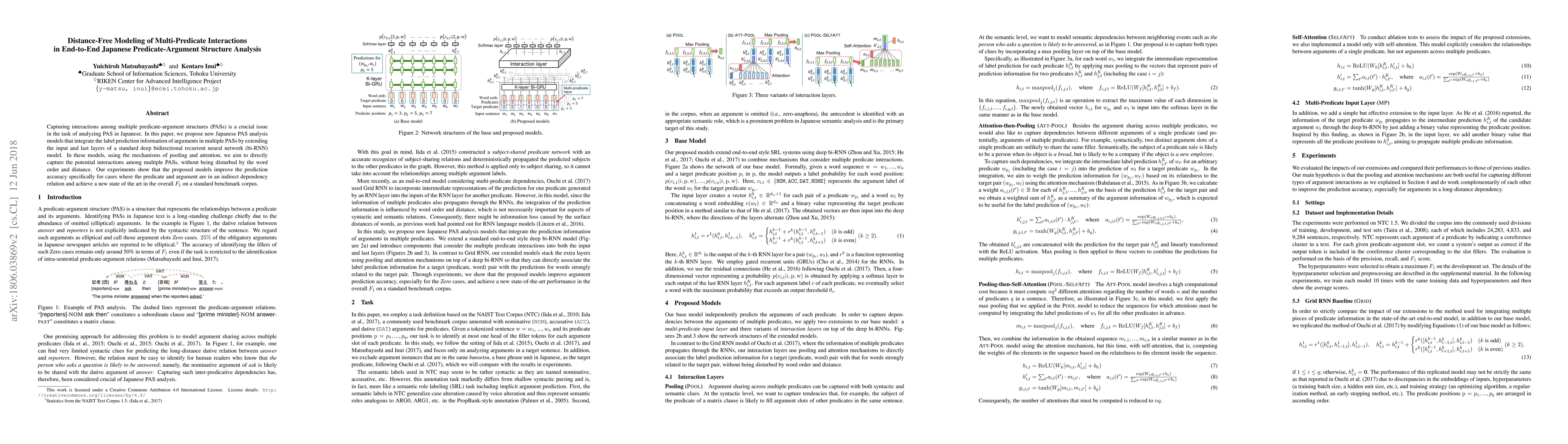 This paper proposes new models for Japanese predicate-argument structure analysis that integrate label prediction information from multiple structures using extended bi-RNN layers, pooling, and attention mechanisms. The models achieve improved accuracy in indirect dependency relations and set a new state-of-the-art in overall $F_1$ score on a benchmark corpus.