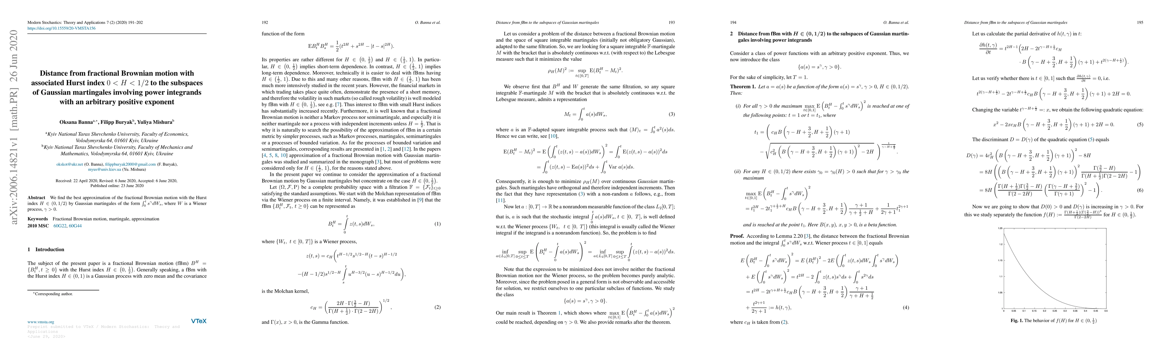 Summary: This paper investigates the optimal approximation of fractional Brownian motion with a Hurst index $H\in (0,1/2)$ by Gaussian martingales of the form $\int_0^t s^{\gamma} dW_s$, where $W$ is a Wiener process and $\gamma > 0$. The study focuses on the distance between these two stochastic processes.