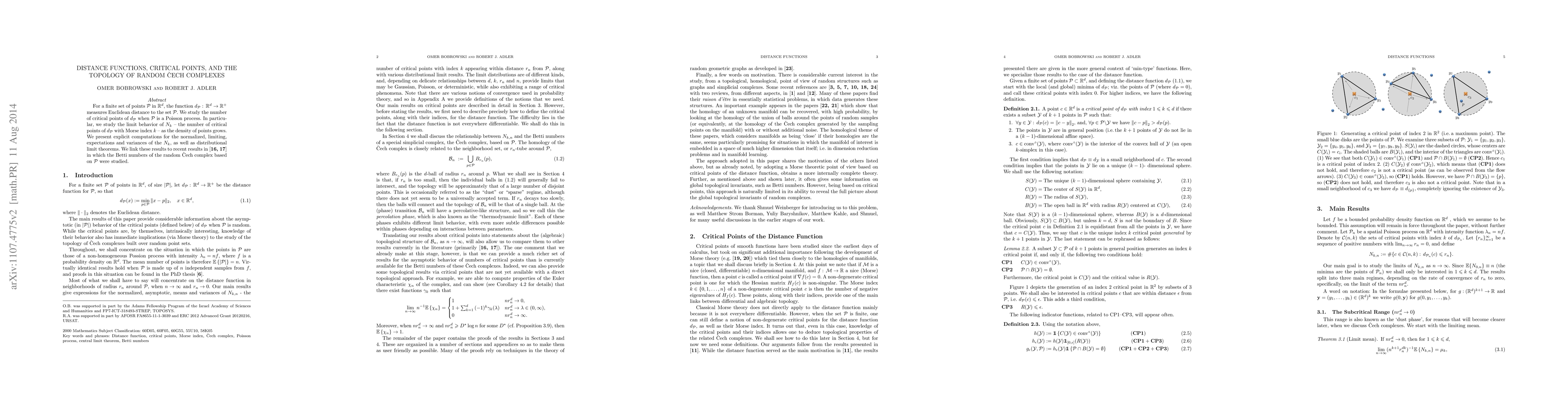 For a finite set of points $P$ in $R^d$, the function $d_P: R^d \to R^+$ measures Euclidean distance to the set $P$. We study the number of critical points of $d_P$ when $P$ is a Poisson process. In particular, we study the limit behavior of $N_k$ - the number of critical points of $d_P$ with Morse index $k$ - as the density of points grows. We present explicit computations for the normalized, limiting, expectations and variances of the $N_k$, as well as distributional limit theorems. We link these results to recent results in which the Betti numbers of the random \v{C}ech complex based on $P$ were studied.
