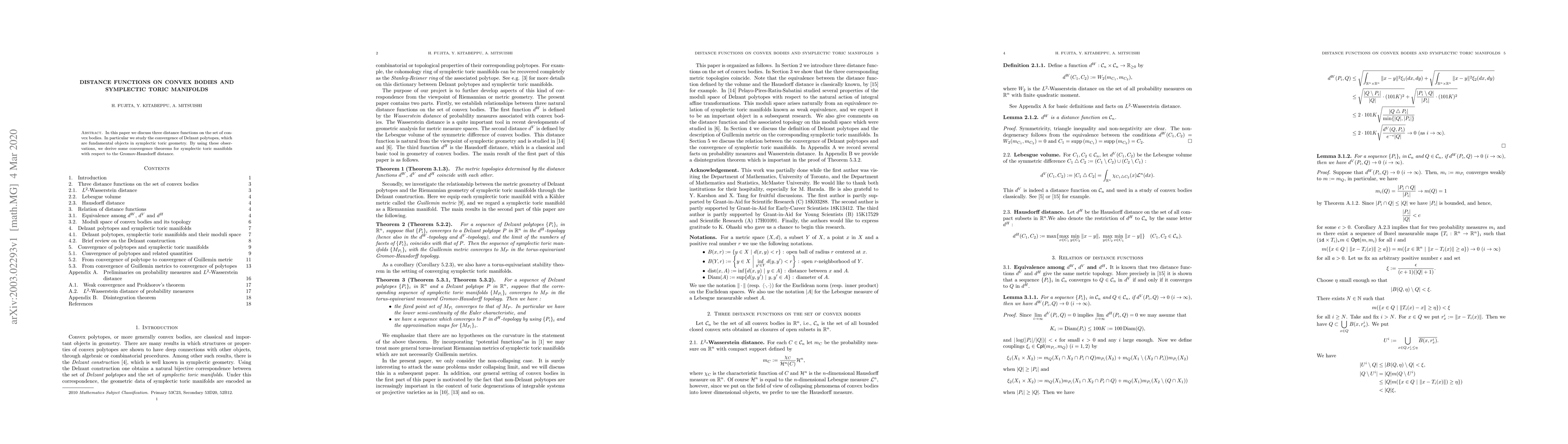 This paper examines three distance functions on convex bodies and investigates the convergence of Delzant polytopes, key objects in symplectic toric geometry, leading to convergence theorems for symplectic toric manifolds using the Gromov-Hausdorff distance.