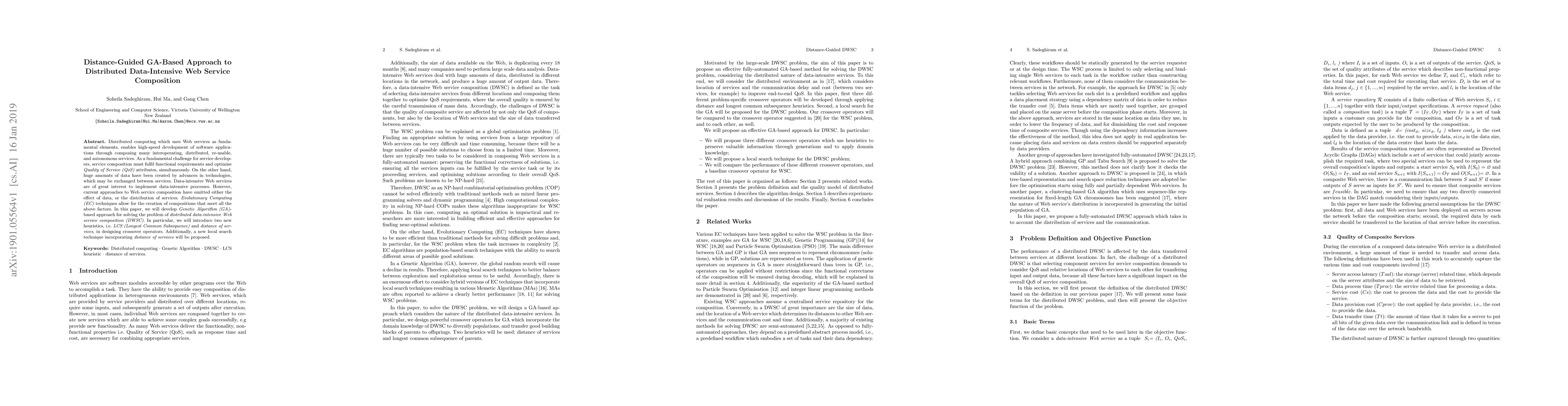 This paper proposes a Genetic Algorithm (GA)-based approach for optimizing distributed data-intensive Web service composition by incorporating distance-guided heuristics, including LCS distance for crossover and a local search technique, to balance functional requirements and Quality of Service attributes.