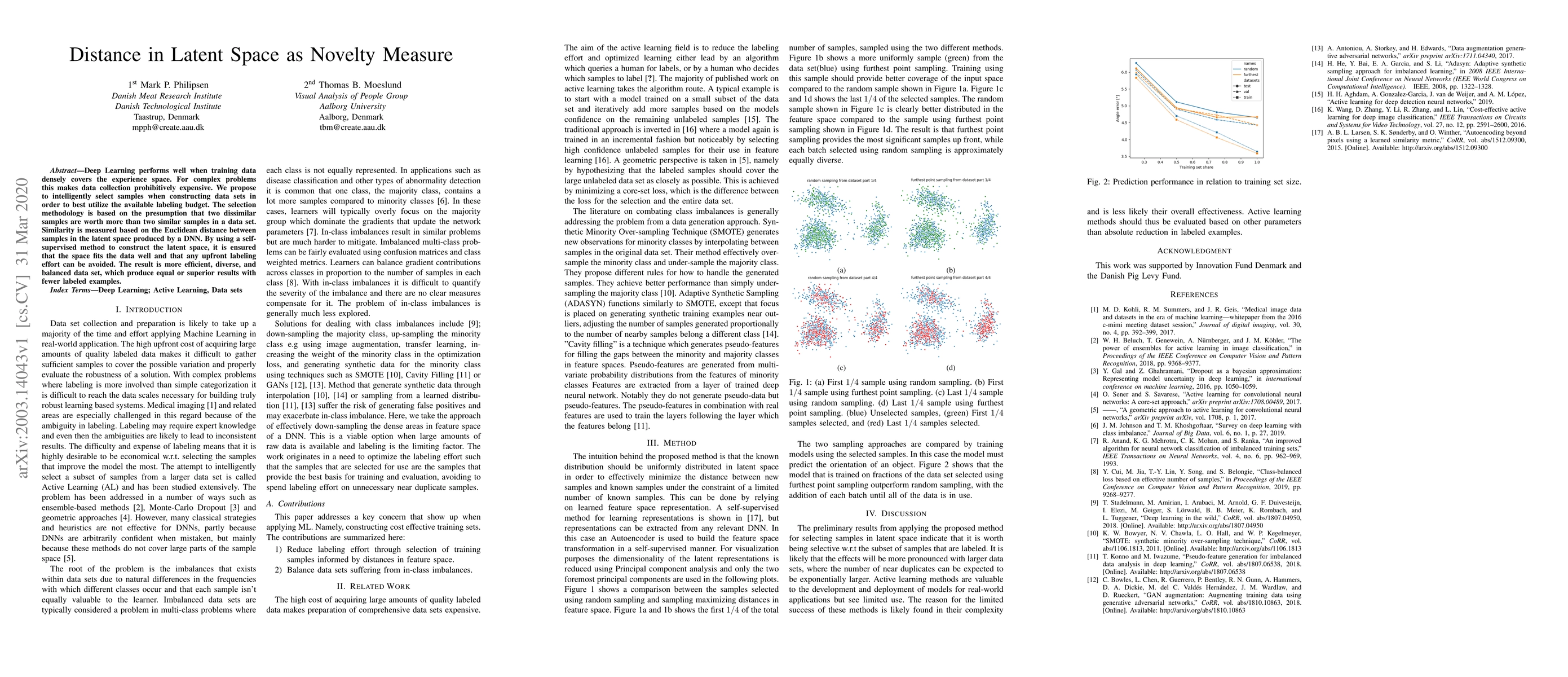 Deep Learning performs well when training data densely covers the experience space. For complex problems this makes data collection prohibitively expensive. We propose to intelligently select samples when constructing data sets in order to best utilize the available labeling budget. The selection methodology is based on the presumption that two dissimilar samples are worth more than two similar samples in a data set. Similarity is measured based on the Euclidean distance between samples in the latent space produced by a DNN. By using a self-supervised method to construct the latent space, it is ensured that the space fits the data well and that any upfront labeling effort can be avoided. The result is more efficient, diverse, and balanced data set, which produce equal or superior results with fewer labeled examples.