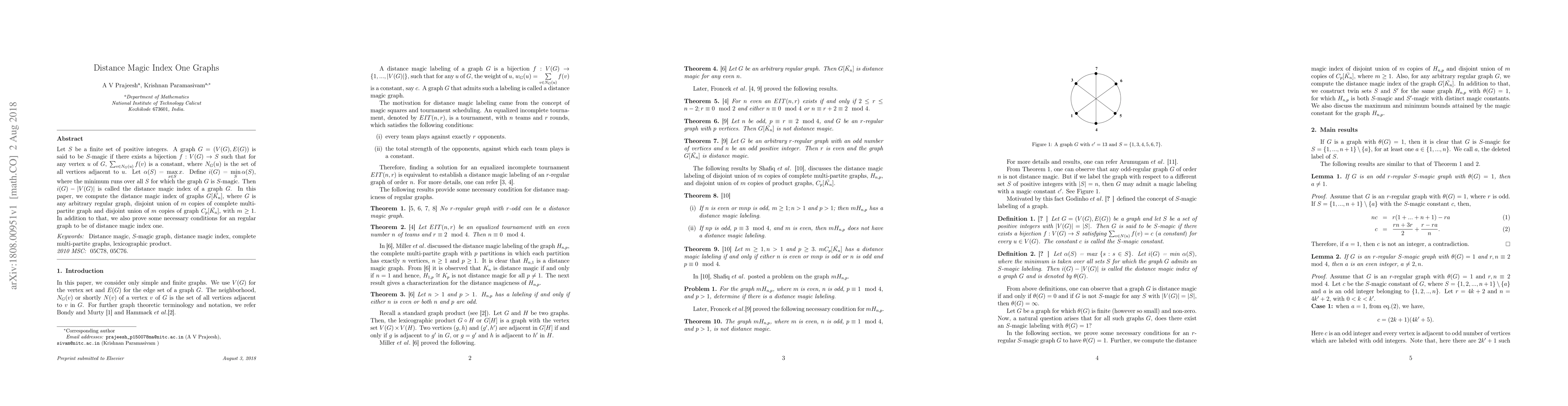 In this paper, we determine the distance magic index of lexicograph product of a regular graph with the complement of complete graph, disjoint union of m copies of complete multi- partite graph and disjoint union of m copies of lexicographic product of cycle with complement of complete graph. In addition to that, we also prove some necessary conditions for a regular graph to be of distance magic index one.