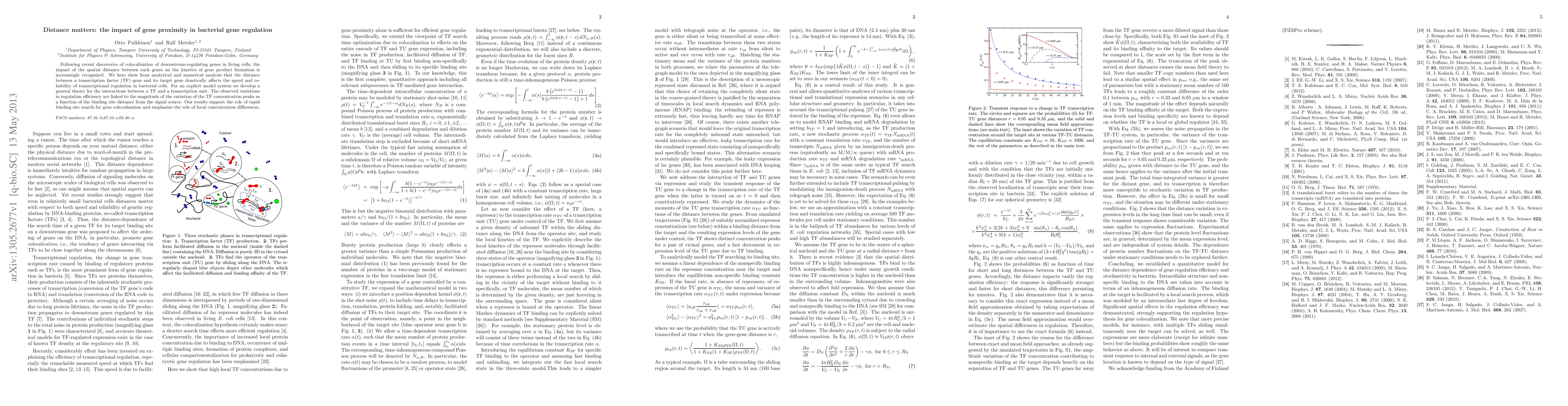 Following recent discoveries of colocalization of downstream-regulating genes in living cells, the impact of the spatial distance between such genes on the kinetics of gene product formation is increasingly recognized. We here show from analytical and numerical analysis that the distance between a transcription factor (TF) gene and its target gene drastically affects the speed and reliability of transcriptional regulation in bacterial cells. For an explicit model system we develop a general theory for the interactions between a TF and a transcription unit. The observed variations in regulation efficiency are linked to the magnitude of the variation of the TF concentration peaks as a function of the binding site distance from the signal source. Our results support the role of rapid binding site search for gene colocalization and emphasize the role of local concentration differences.