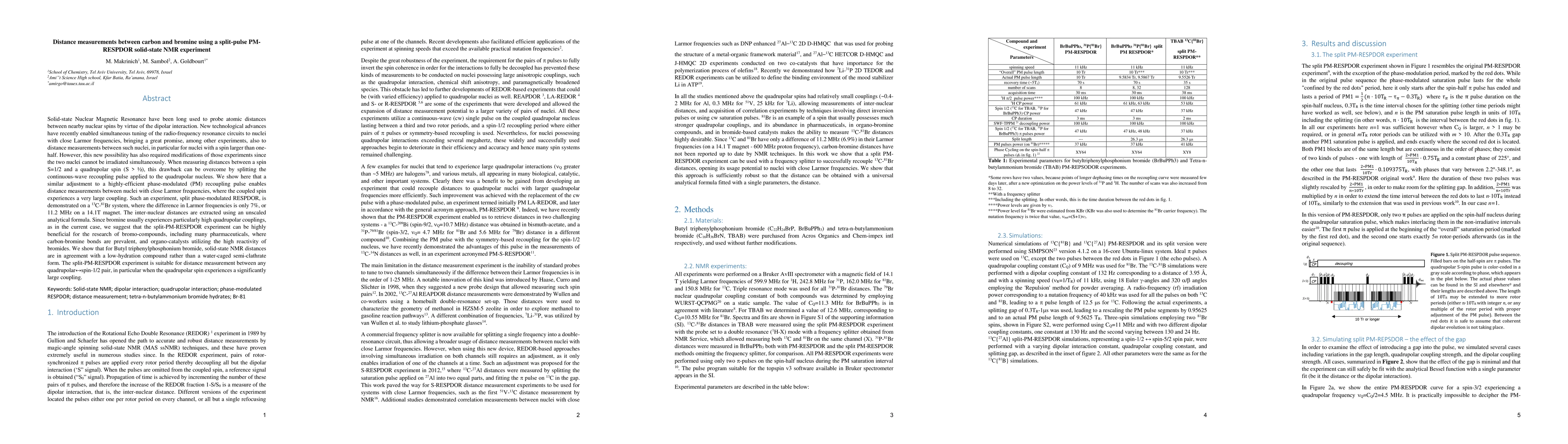 This paper introduces a split-phase-modulated RESPDOR solid-state NMR experiment to measure distances between carbon and bromine nuclei, overcoming challenges posed by their close Larmor frequencies and high quadrupolar couplings. The method accurately determines inter-nuclear distances in bromo-compounds, demonstrating its utility in studying pharmaceuticals and organo-catalysts.
