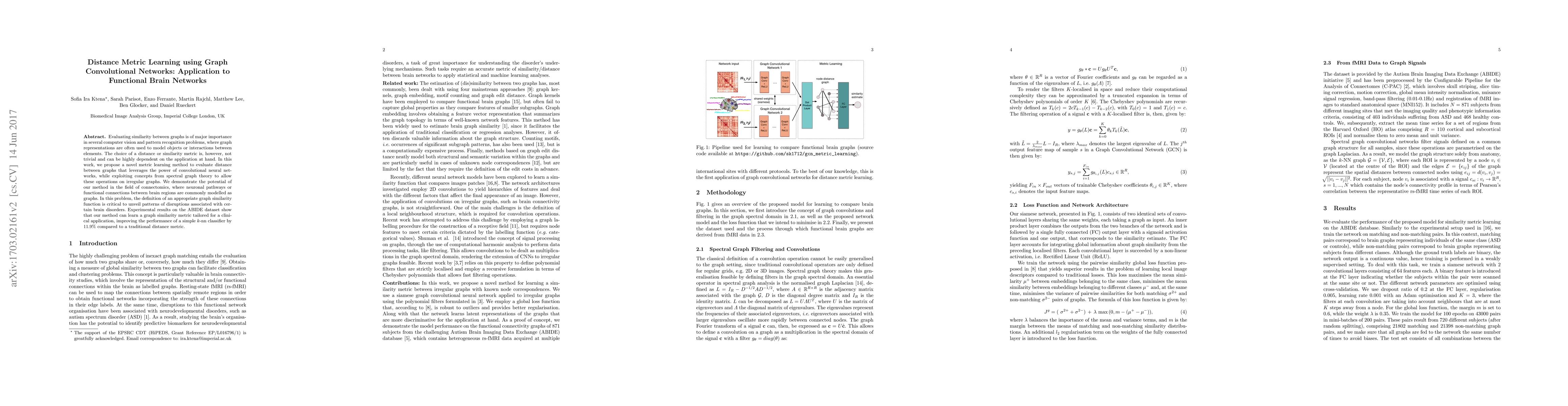 This paper proposes a novel metric learning method using graph convolutional networks to evaluate the similarity between graphs, demonstrating its application in connectomics for identifying brain disorder patterns. Experimental results on the ABIDE dataset show an 11.9% improvement in k-nn classifier performance over traditional distance metrics.