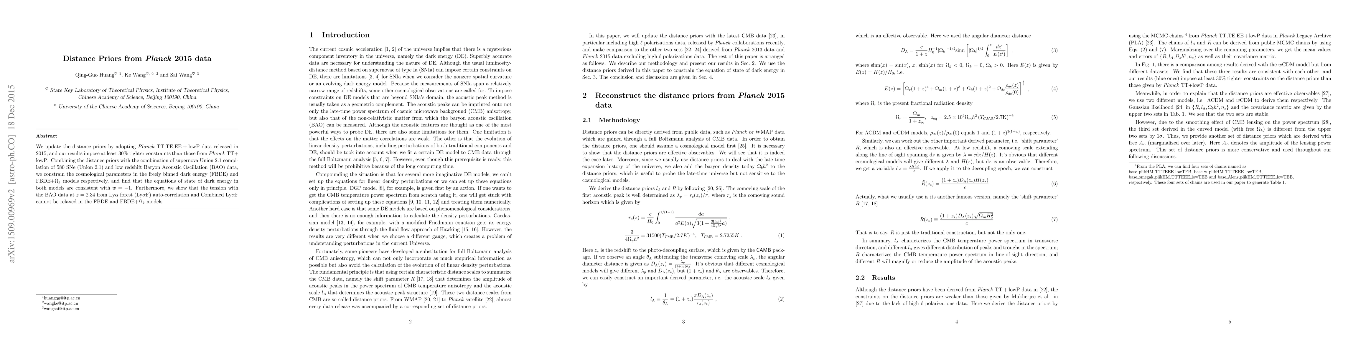 This research updates distance priors using Planck 2015 data, achieving at least 30% tighter constraints than previous methods. Combining these priors with supernova and BAO data, it finds dark energy equations of state consistent with w=-1, but highlights tension with Lyα forest data that cannot be resolved in the tested models.