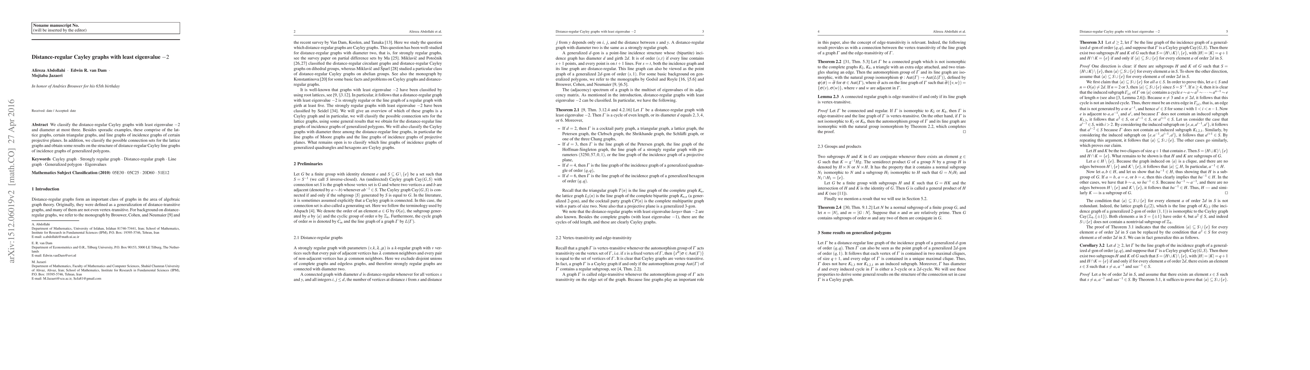 Summary: This paper classifies distance-regular Cayley graphs with diameter ≤ 3 and least eigenvalue -2, including lattice graphs, certain triangular graphs, and line graphs of incidence graphs of projective planes, and discusses the connection sets for lattice graphs and structure of related line graphs.