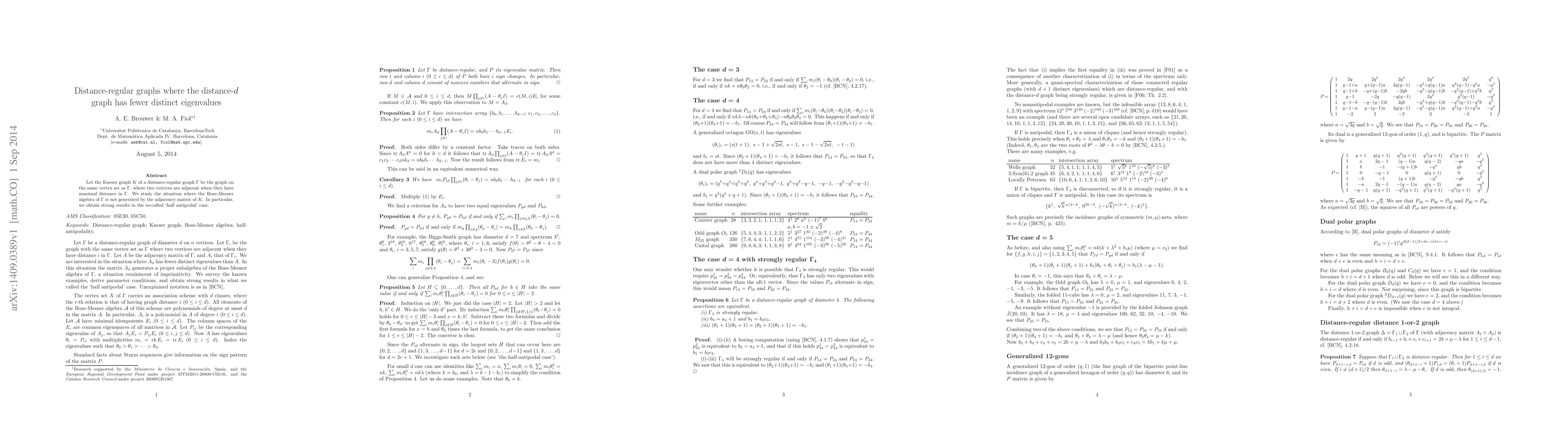 Researchers studied distance-regular graphs where the distance-d graph has fewer distinct eigenvalues, finding strong results in a specific case called 'half antipodal' and implications for the Bose-Mesner algebra.