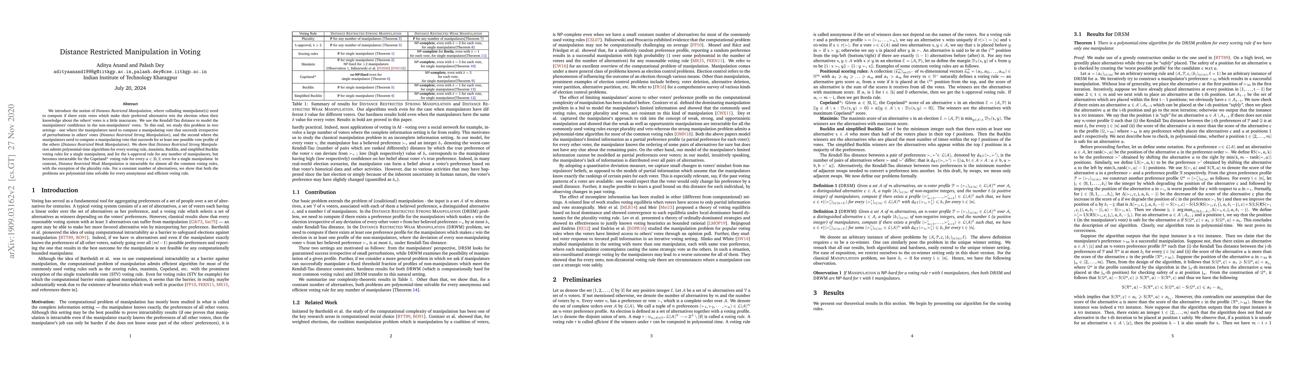 This paper introduces the concept of Distance Restricted Manipulation in voting, where manipulators' knowledge of others' votes is imperfectly modeled using Kendall-Tau distance. It explores two settings: Distance Restricted Strong Manipulation and Distance Restricted Weak Manipulation, finding that the former is polynomial-time solvable for several voting rules but intractable for Copeland$^\alpha$ rules, while the latter is generally intractable except for the plurality rule.