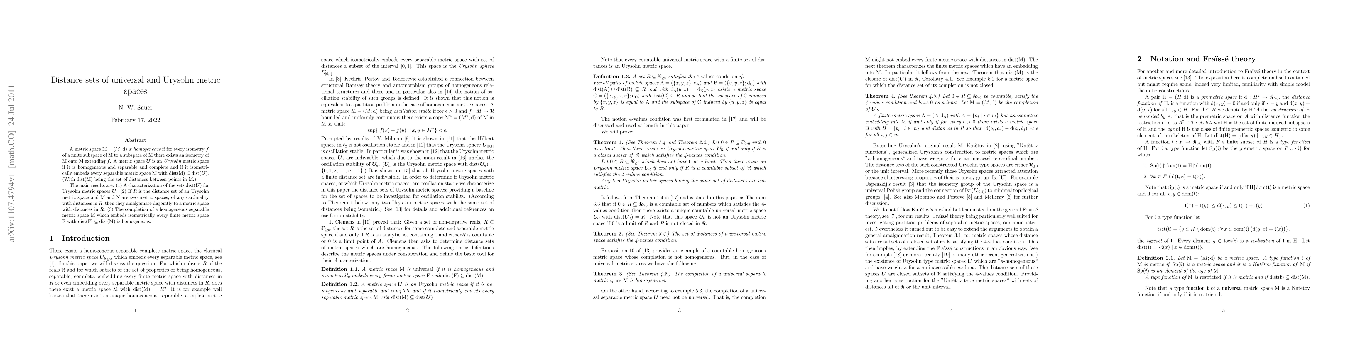 The paper presents new characterizations and results regarding distance sets of Urysohn metric spaces, advancing the theoretical framework in metric space theory.