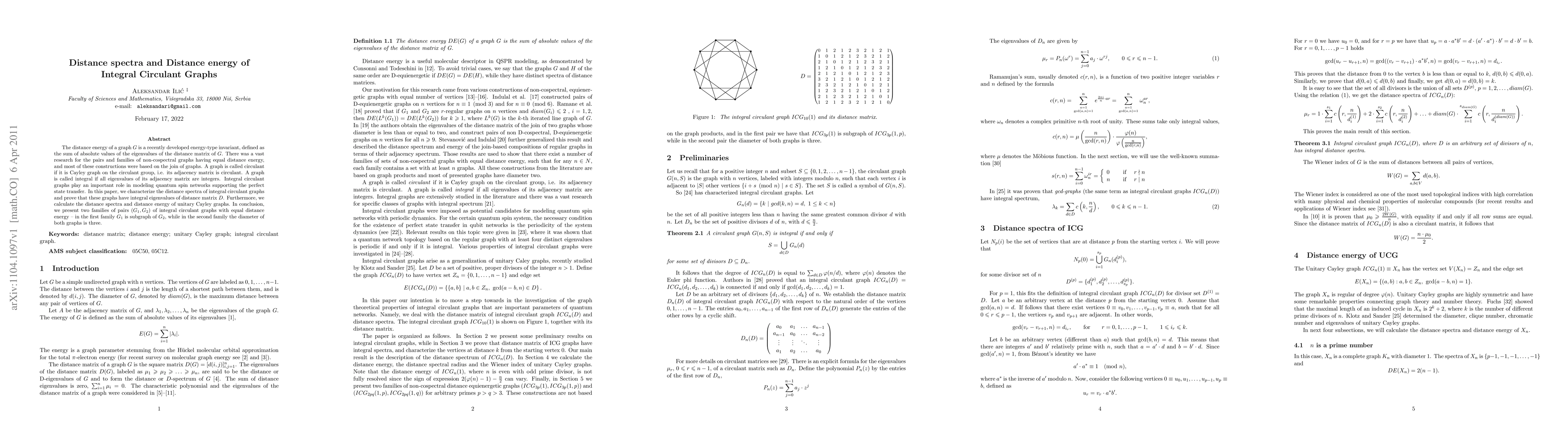 This paper characterizes the distance spectra and distance energy of integral circulant graphs, proving that these graphs have integral eigenvalues for their distance matrices. It also identifies two families of non-cospectral integral circulant graphs with equal distance energy, providing insights into their structural properties.