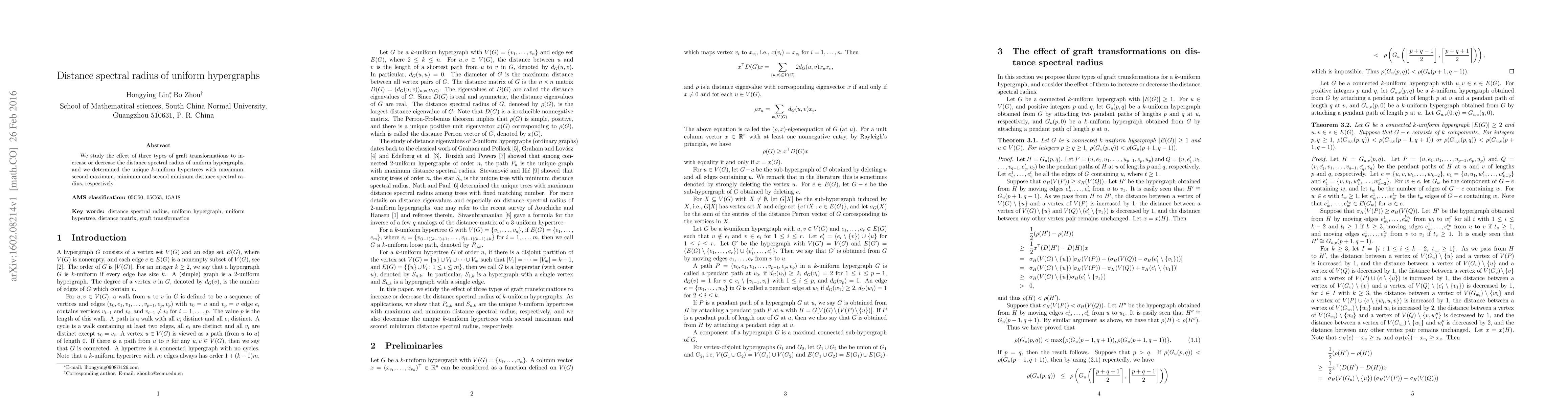 Summary: This paper investigates the impact of three graft transformations on the distance spectral radius of uniform hypergraphs, identifying unique $k$-uniform hypertrees with extremal distance spectral radii values.