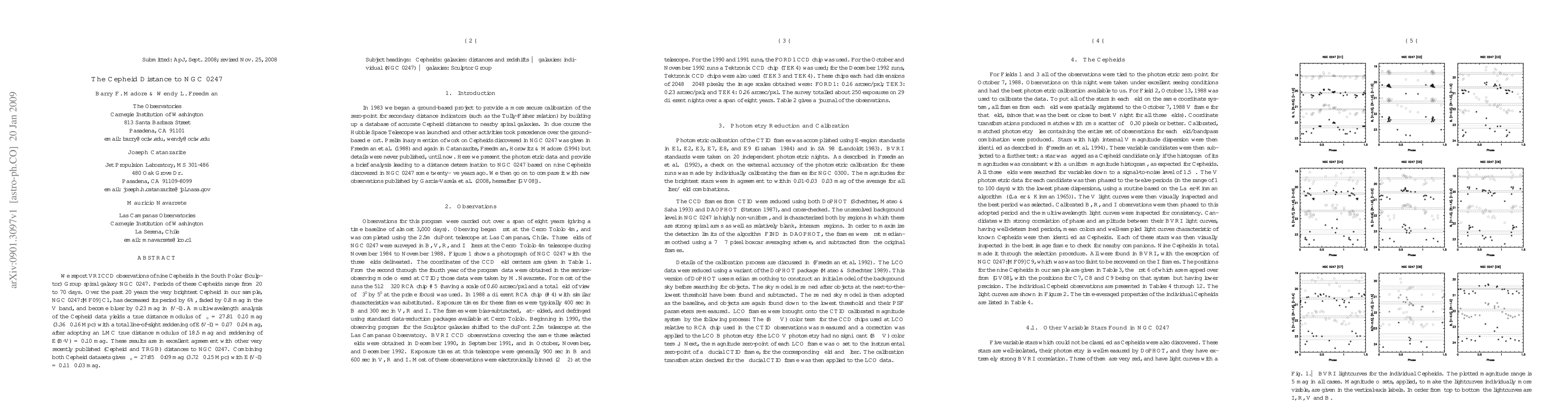 A team of astronomers used Cepheid stars to measure the distance to NGC 0247, a spiral galaxy in the Sculptor Group, with a distance modulus of 27.81 mag and a reddening of E(V-I) = 0.07 mag.