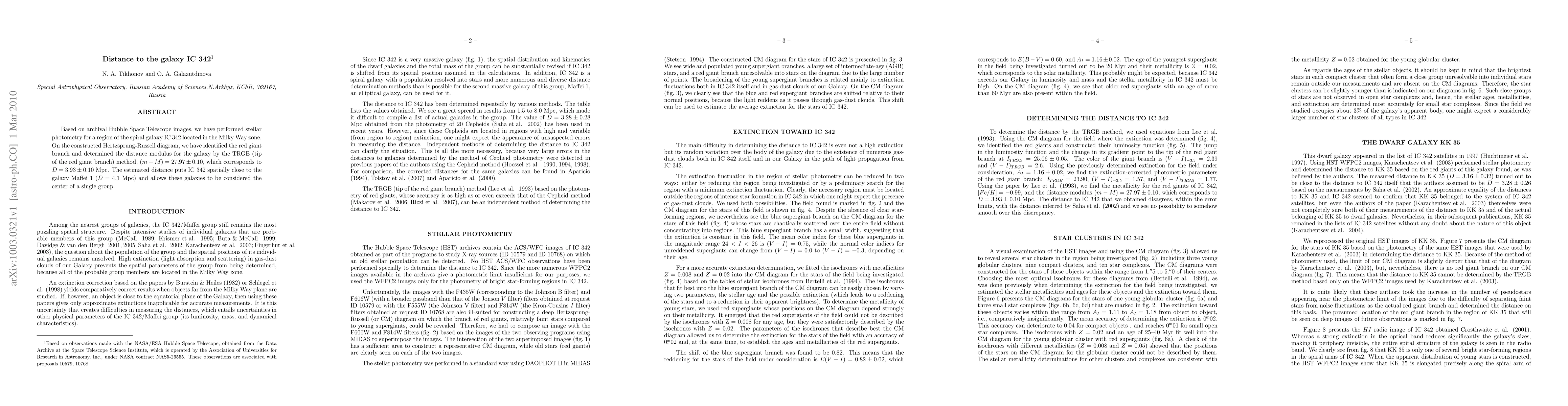 The paper presents a novel distance determination for IC 342 using the TRGB method on HST photometry, providing a more accurate value than previous estimates.