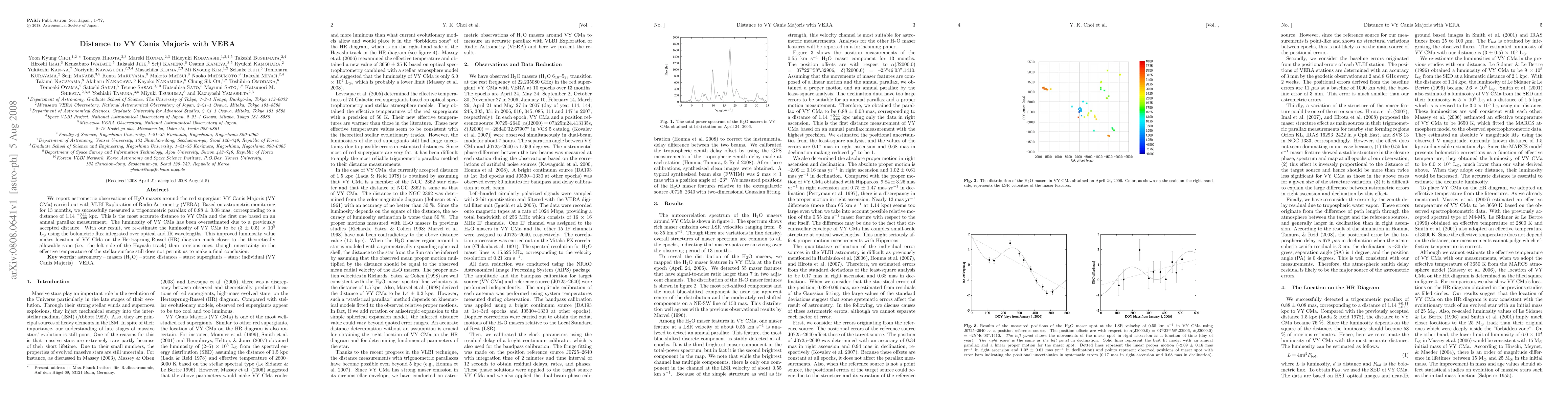 We report astrometric observations of H2O masers around the red supergiant VY Canis Majoris (VY CMa) carried out with VLBI Exploration of Radio Astrometry (VERA). Based on astrometric monitoring for 13 months, we successfully measured a trigonometric parallax of 0.88 +/- 0.08 mas, corresponding to a distance of 1.14 +0.11/-0.09 kpc. This is the most accurate distance to VY CMa and the first one based on an annual parallax measurement. The luminosity of VY CMa has been overestimated due to a previously accepted distance. With our result, we re-estimate the luminosity of VY CMa to be (3 +/- 0.5) x 10^5 L_sun using the bolometric flux integrated over optical and IR wavelengths. This improved luminosity value makes location of VY CMa on the Hertzsprung-Russel (HR) diagram much closer to the theoretically allowable zone (i.e. the left side of the Hayashi track) than previous ones, though uncertainty in the effective temperature of the stellar surface still does not permit us to make a final conclusion.