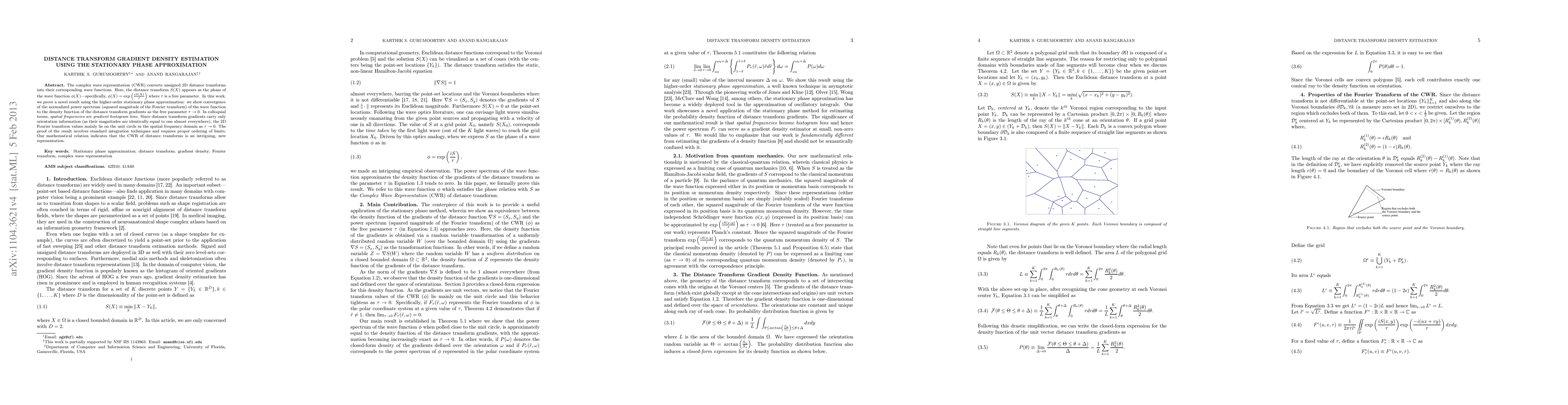 This paper demonstrates that the complex wave representation (CWR) of 2D distance transforms converges to the gradient density function of the transforms using the stationary phase approximation. The normalized power spectrum of the CWR wave function approaches the gradient histogram as a parameter tends to zero, indicating a novel representation of distance transform gradients.