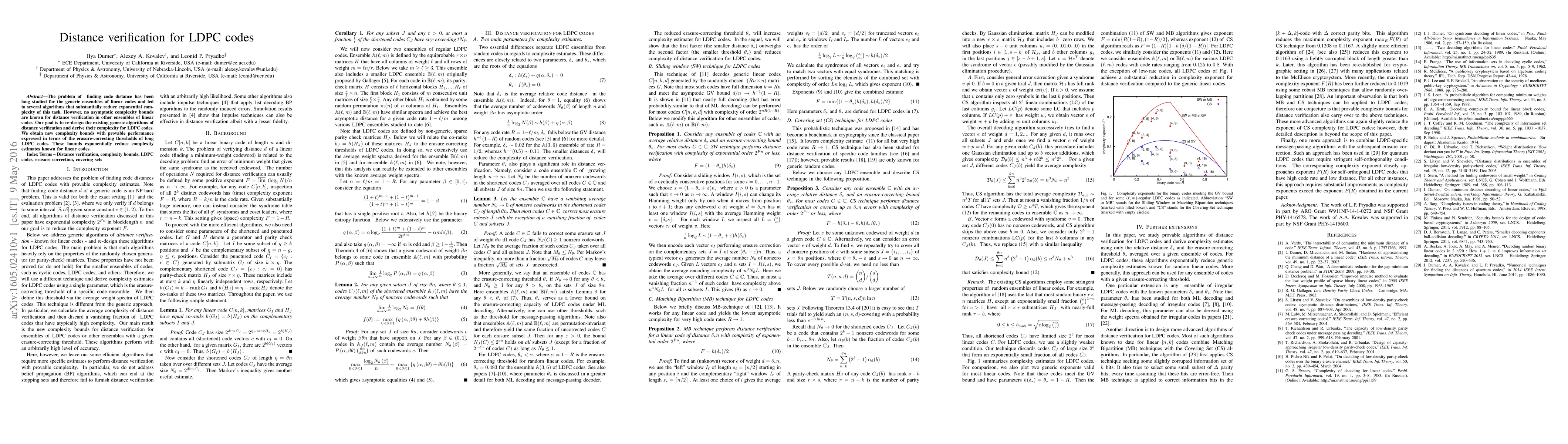 This paper redesigns algorithms for verifying code distance in low-density parity-check (LDPC) codes, providing new complexity bounds that significantly reduce the complexity compared to existing methods for linear codes. The results are expressed in terms of erasure-correcting thresholds for long LDPC codes.