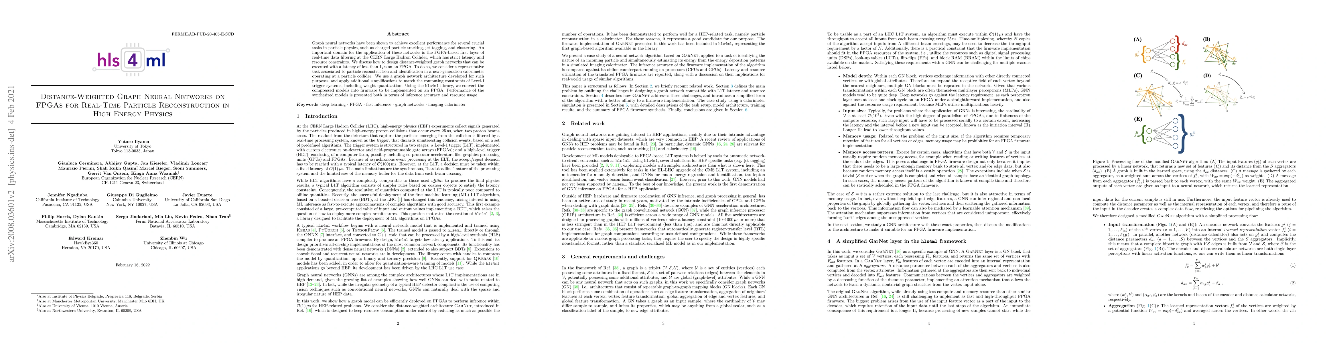 This paper explores the design of distance-weighted graph neural networks optimized for FPGA implementation to achieve real-time particle reconstruction in high energy physics, focusing on meeting strict latency and resource constraints at the CERN Large Hadron Collider. The synthesized models demonstrate high inference accuracy and efficient resource usage, suitable for Level-1 trigger systems.