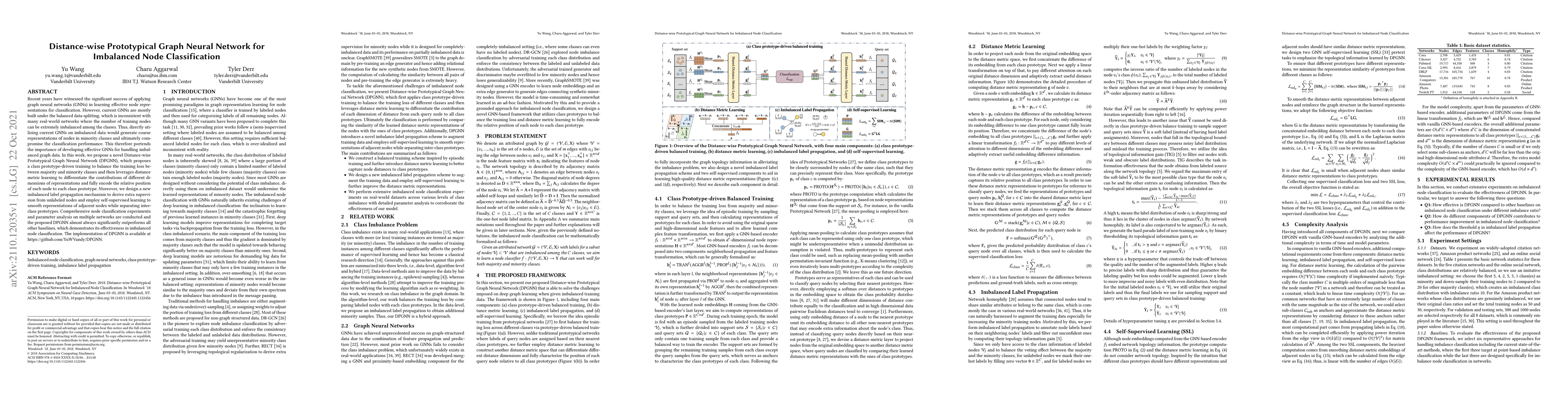 This paper proposes a novel Distance-wise Prototypical Graph Neural Network (DPGNN) to address node classification in imbalanced graph data. The method balances training loss between classes and employs distance metric learning to enhance node representations, achieving superior performance over baselines in experiments.