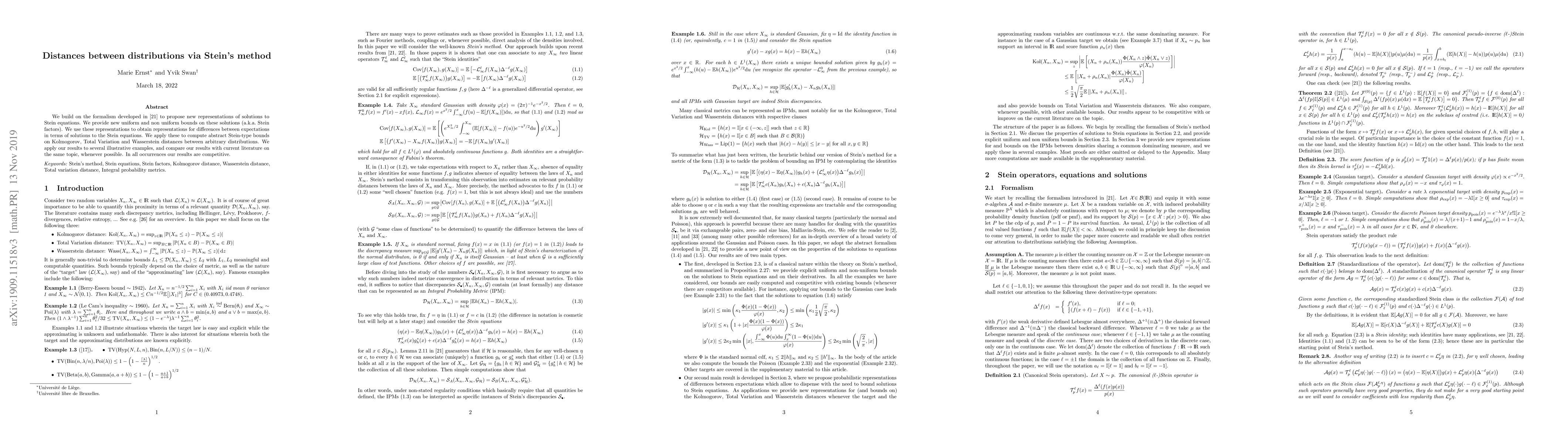 This paper uses Stein equations to provide new bounds on distances between distributions, including Kolmogorov, Total Variation, and Wasserstein distances, with competitive results compared to existing literature.